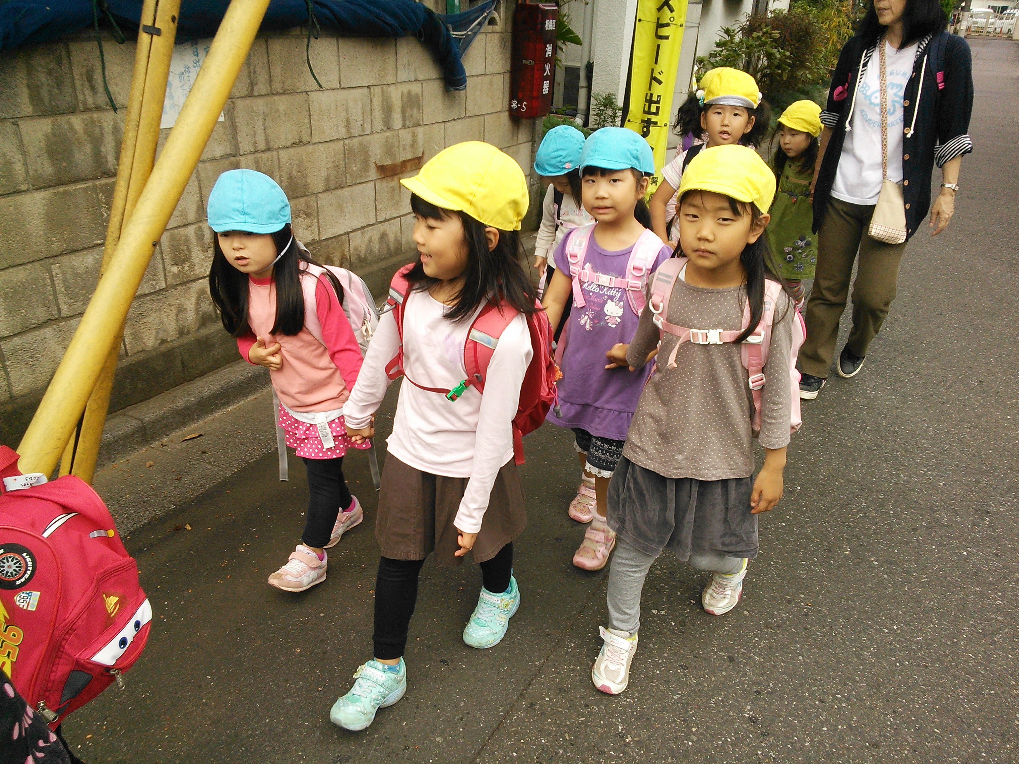 さくら組のお兄さんお姉さんと手を繋いで出発です。