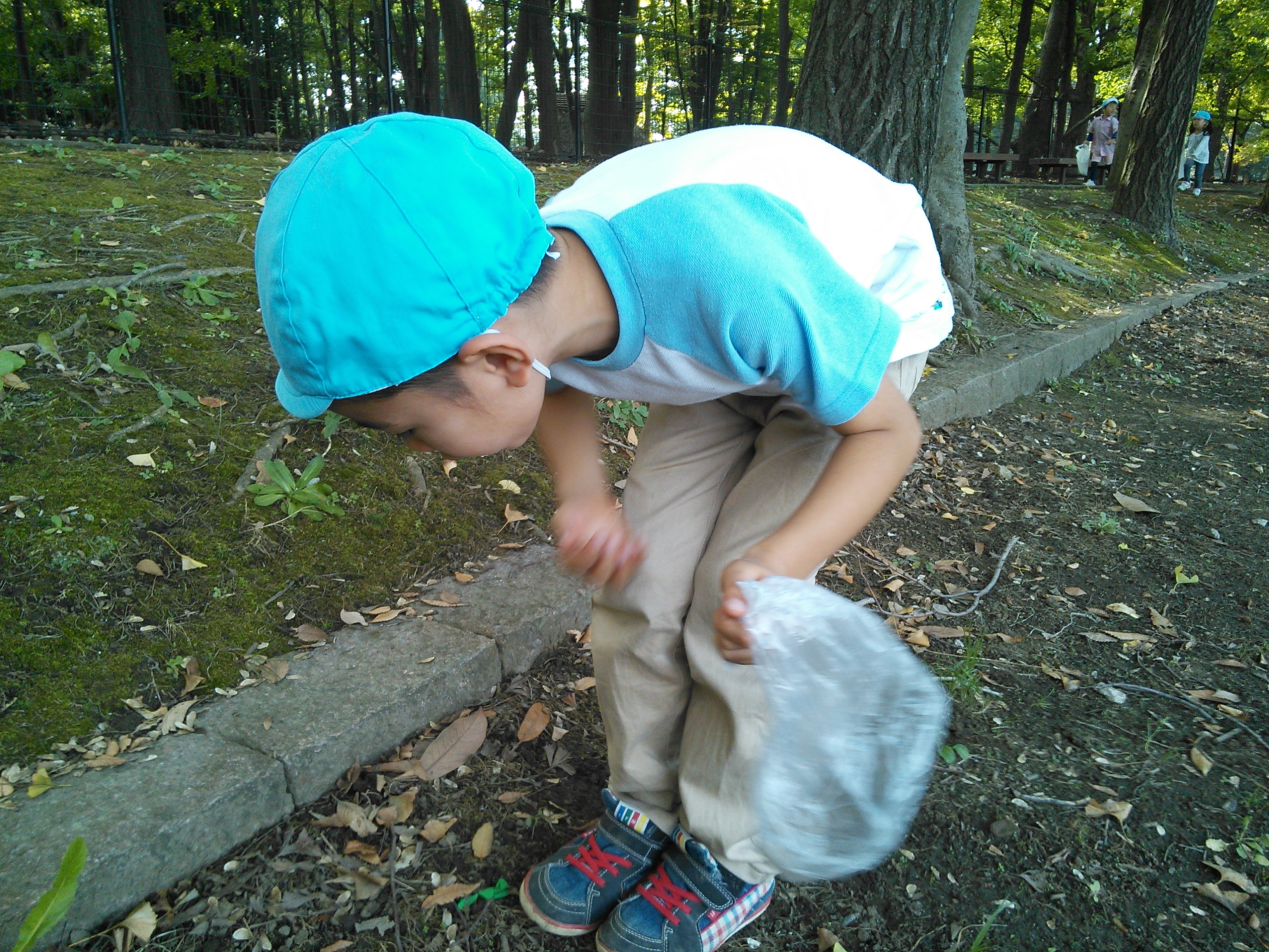 お弁当後は、原っぱでブーメランや靴飛ばしをしたり、どんぐり探しをしました。