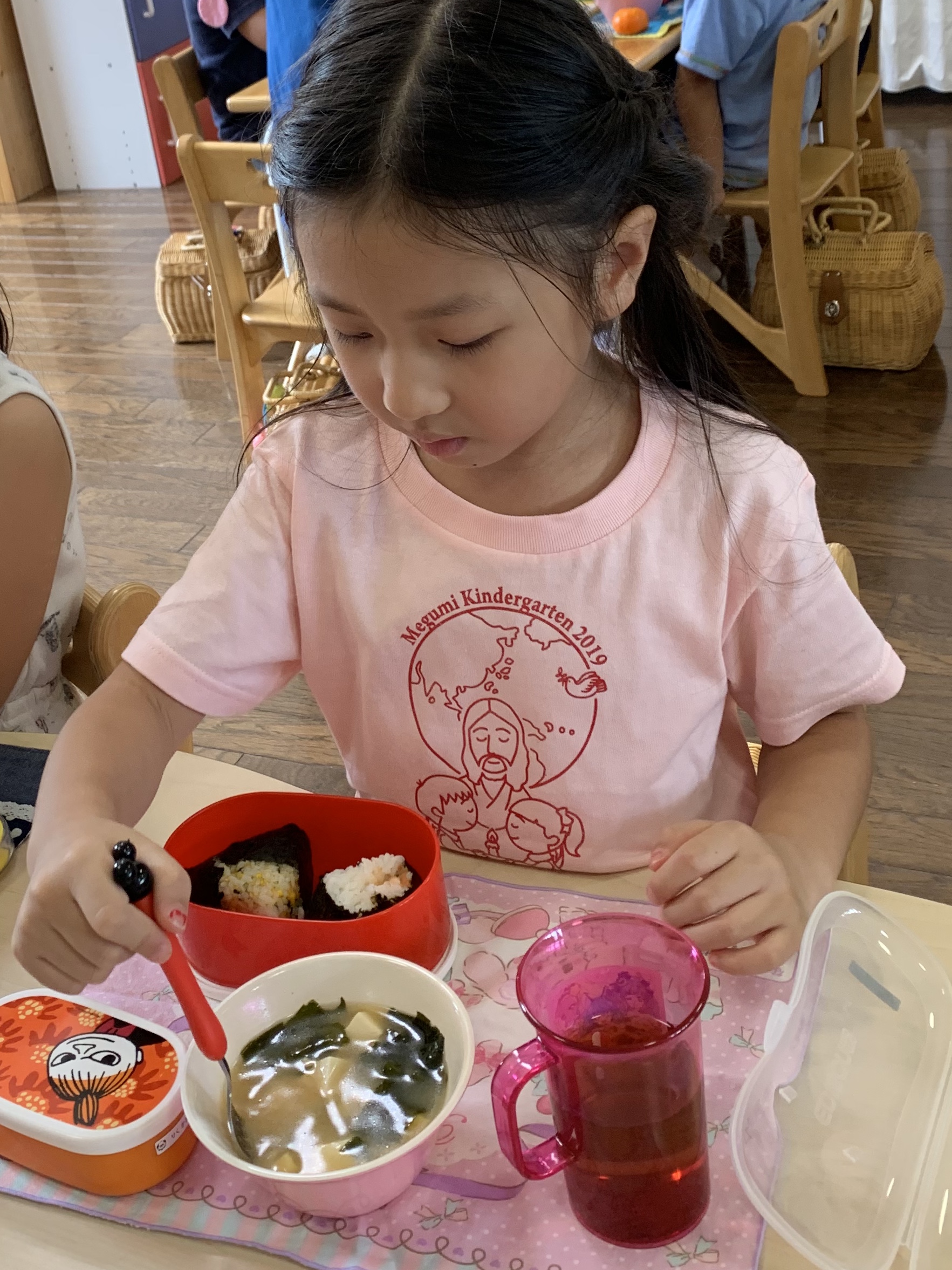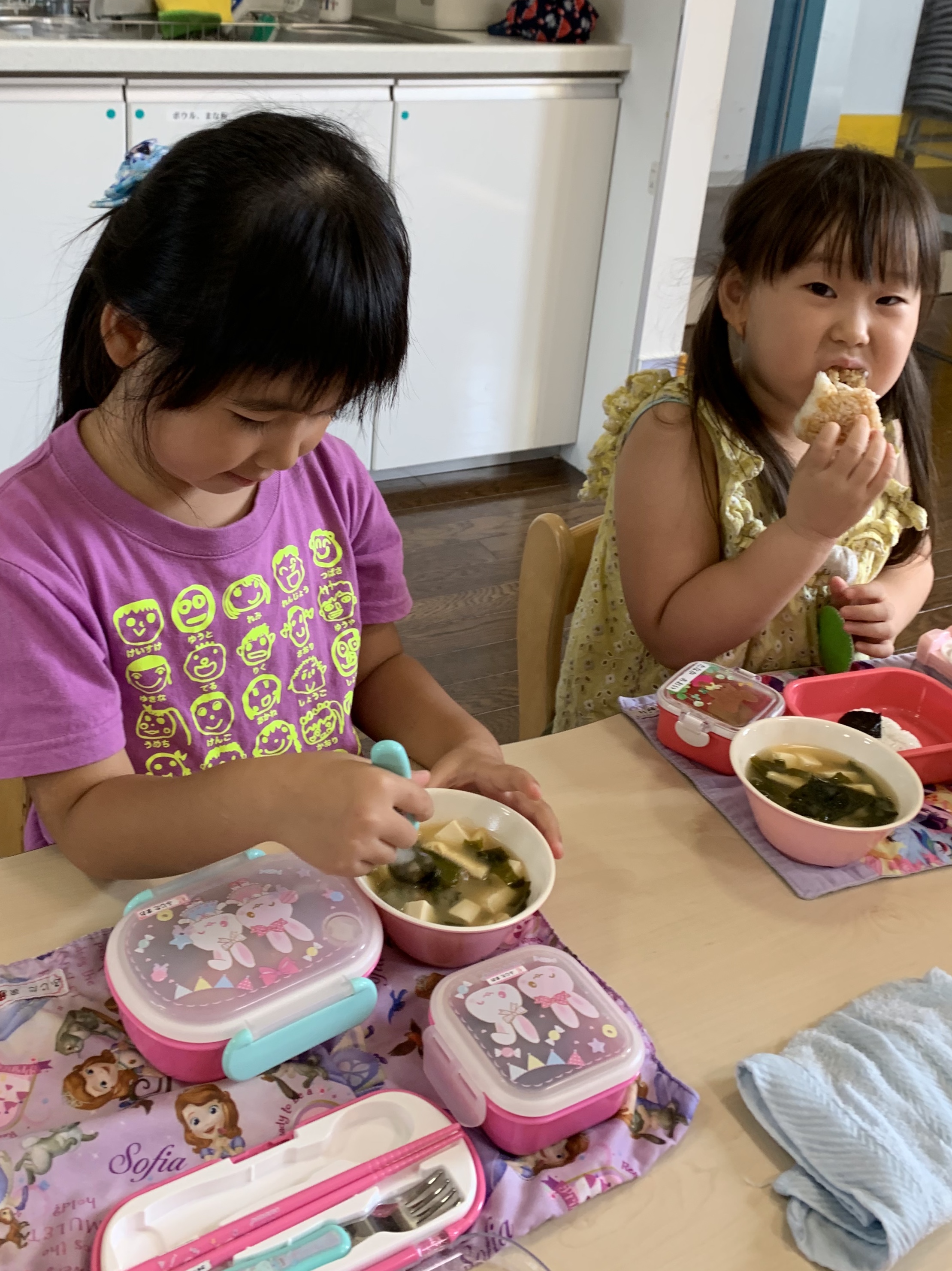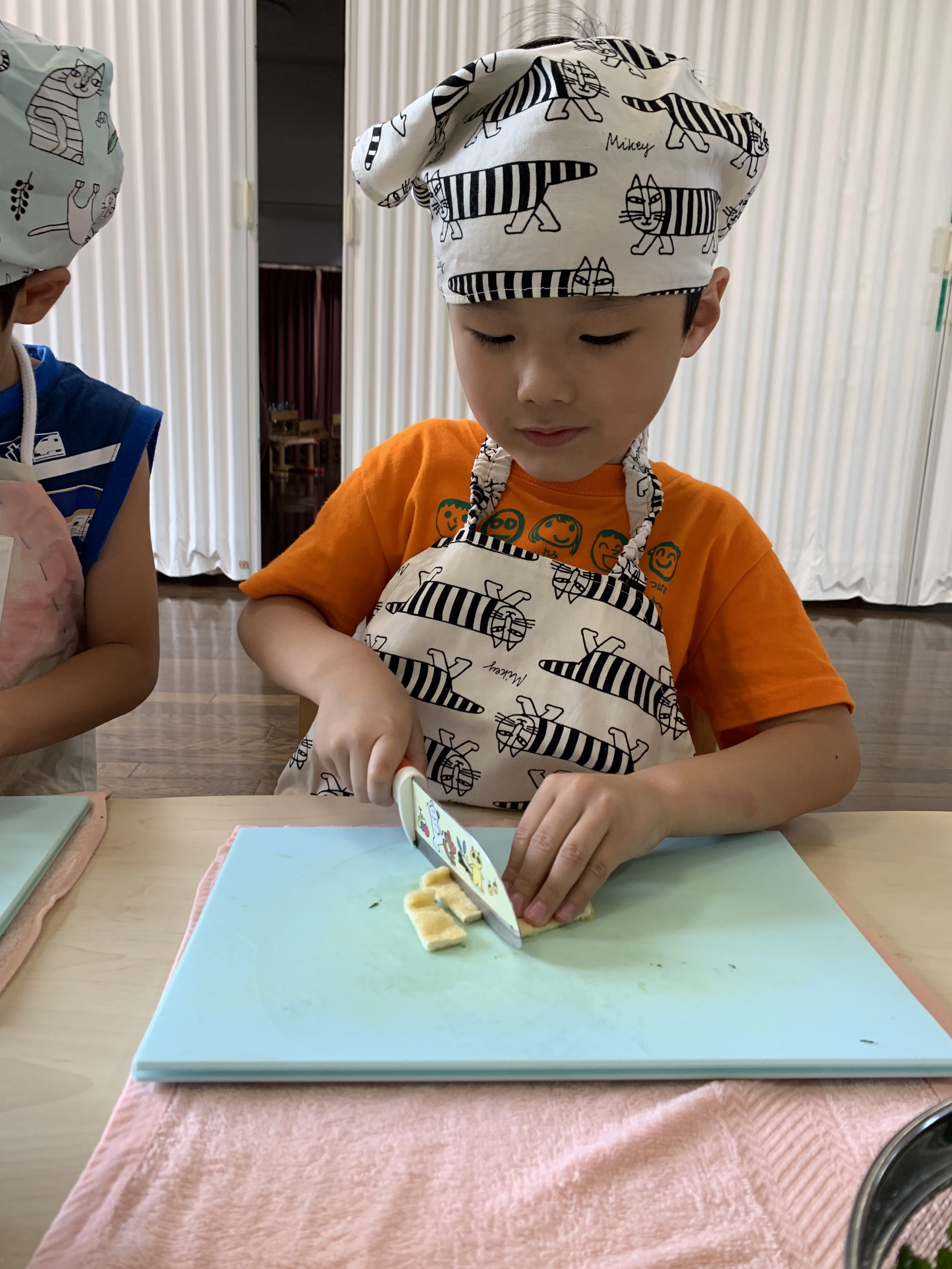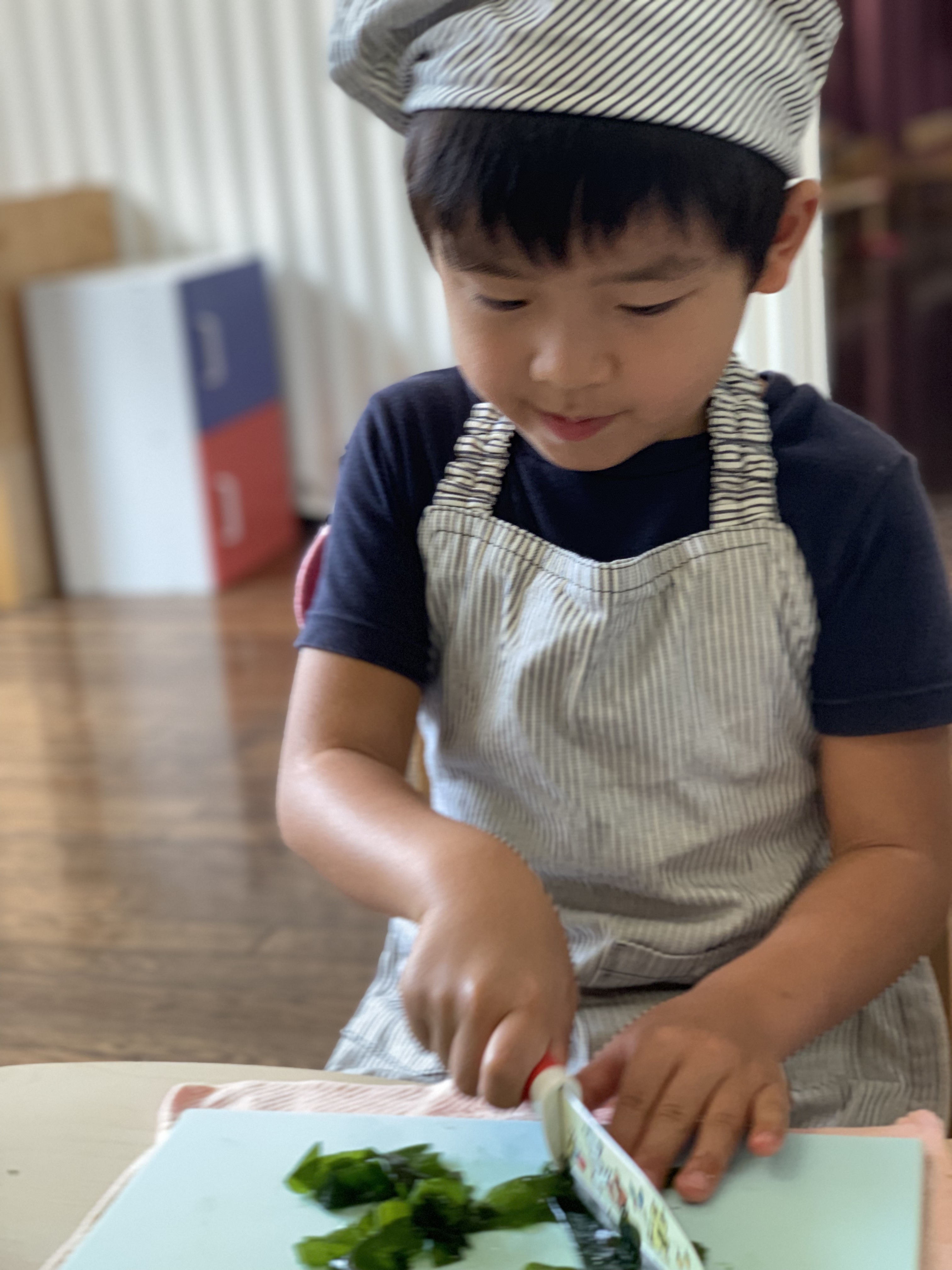 今日は『おにぎりの日』。年長さんが、登園後具材を切ってくれました。