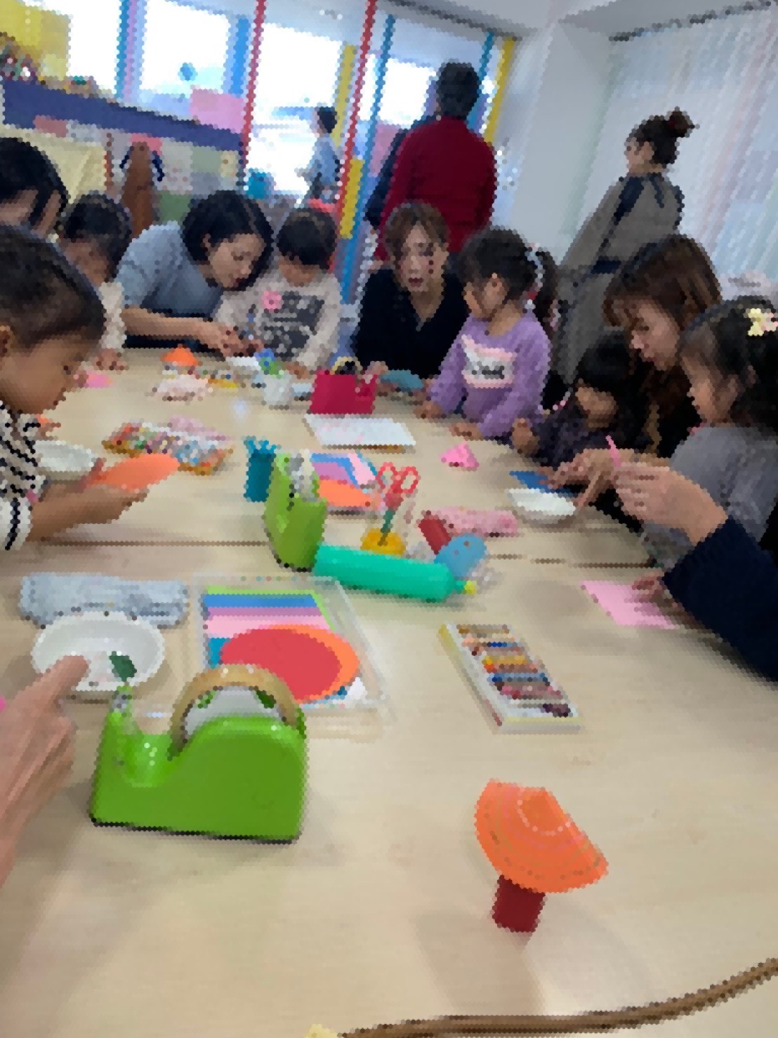 出来た「きのこ」を手に持って「きのこ体操」をしてくれたお友達もいて盛り上がりました!!