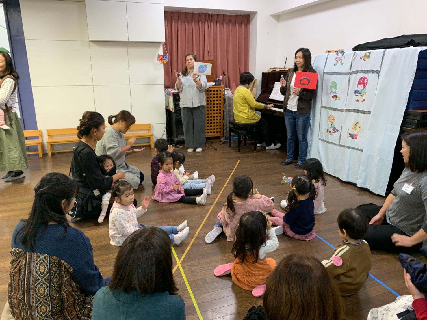 鈴グループとカスタネットグループに分かれて、一緒に鳴らしたり静かに聞いて待つことも出来ました。