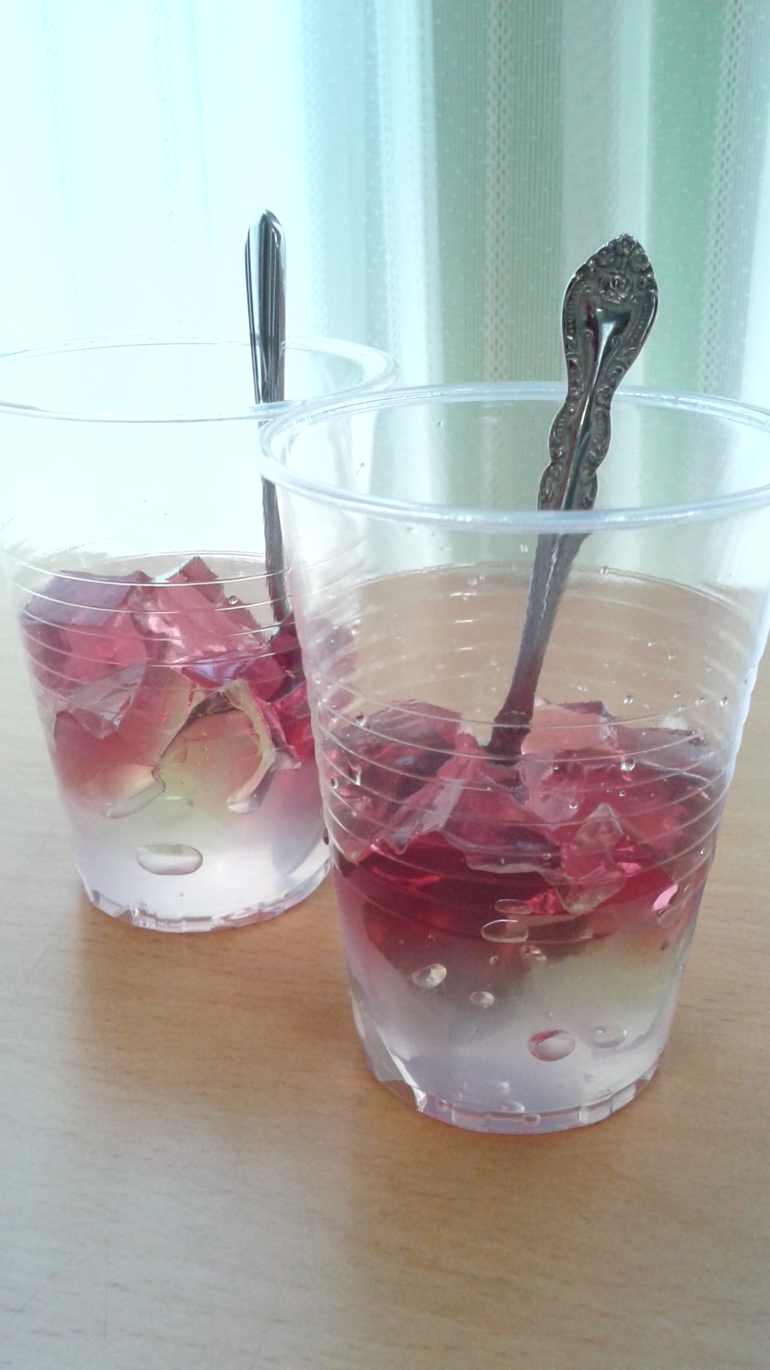 昨日の『あじさいお散歩』の後…各学年で紫陽花色のゼリーを作りました。