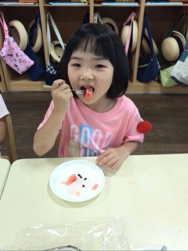 全員が楽しんだ後は本物のすいかをおやつに頂きました。