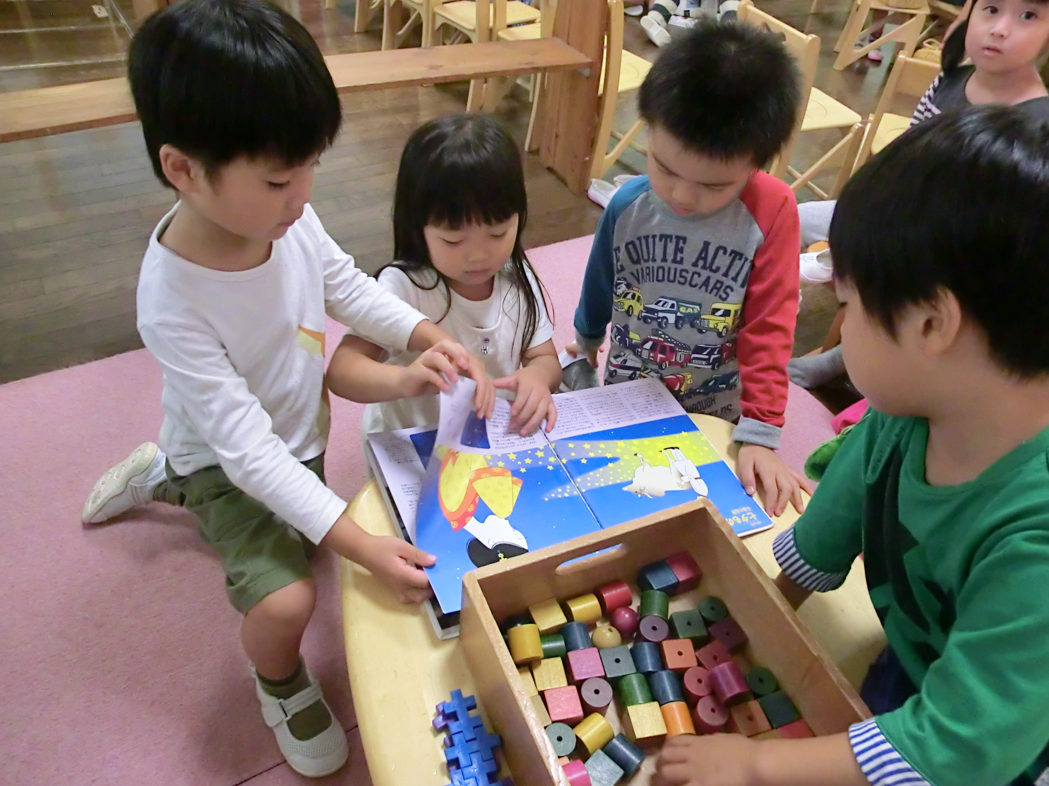 食べ終わったらお腹を休めるために、好きな絵本を見て過ごします。
