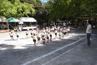小さなゆり組さんの姿を見て微笑ましく・懐かしく思い、大きなお友達の姿を見て憧れの思いを持って皆で一緒に頑張っていました。