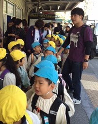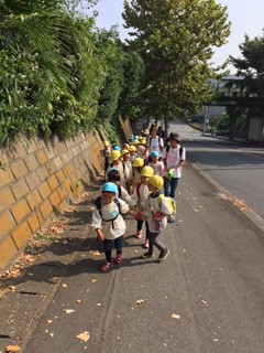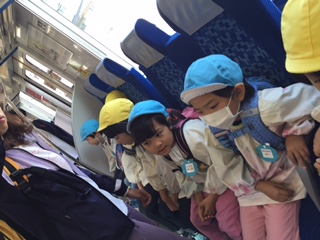 めぐみ幼稚園の子どもたちは、電車に乗って朝霞台までお芋掘りに行きました。