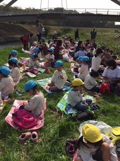 ここまでお芋を育ててくださった畑の方に、お礼を伝え…河原に行って散策・お昼ご飯を食べました。