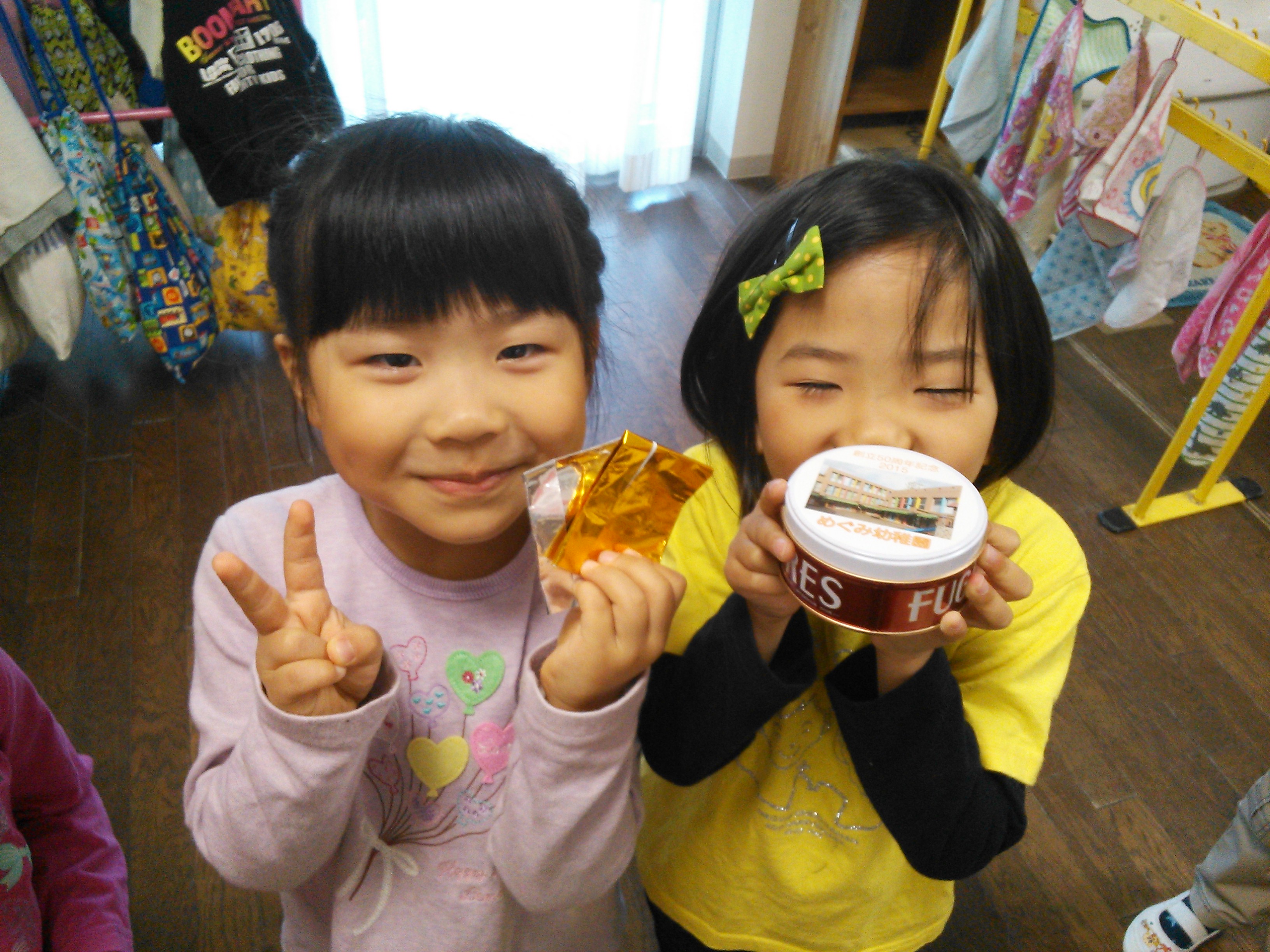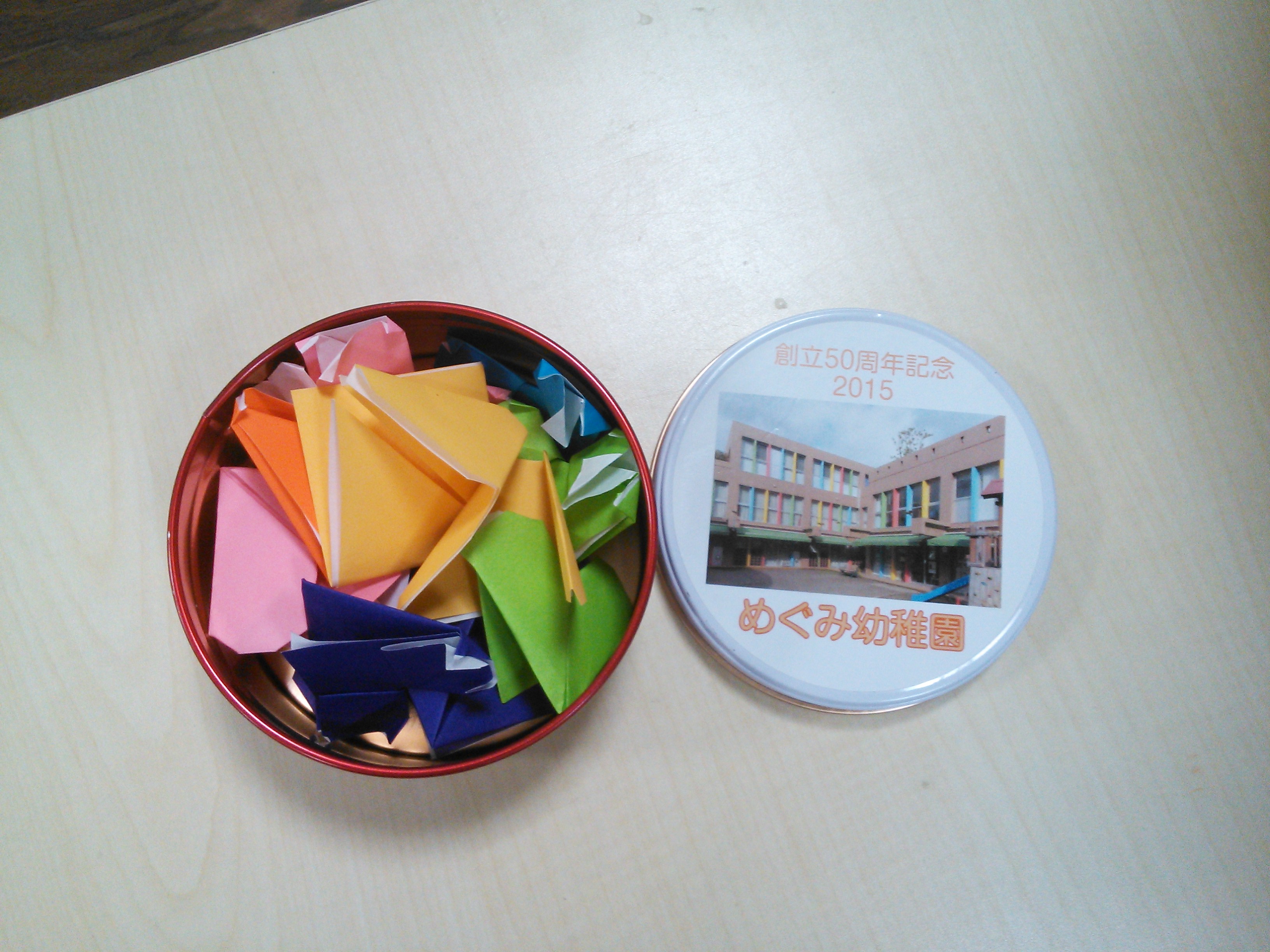 昨日の創立50周年記念感謝礼拝での子どもたちのお土産に園舎の写真が入った可愛い缶のお菓子がありました。
