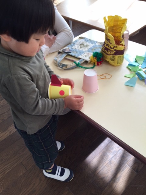 そして今日の製作は。。紙コップロケットです。おうちの方と一緒に何度も飛ばしました。ぴょーん!と高く飛びましたね。おうちでもたくさん遊んで下さい。
