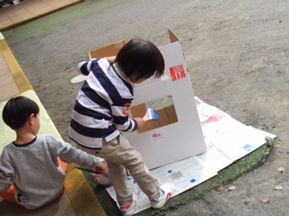 ダンボールを見つけたので、早速作り始めました。