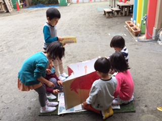 さくら組の子どもたちは『おしっこしょうぼうたい』の絵本が大好きです。