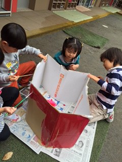 次に丁度いいダンボールがあったら、『おしっこしょうぼうたい』に出て来る、消防車を作ろう…と、言っていました。