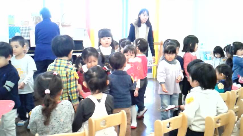 サンタさんの鈴やカスタネットを鳴らして、音楽に合わせて体を動かしました。楽器を使って、楽しかったですね。
