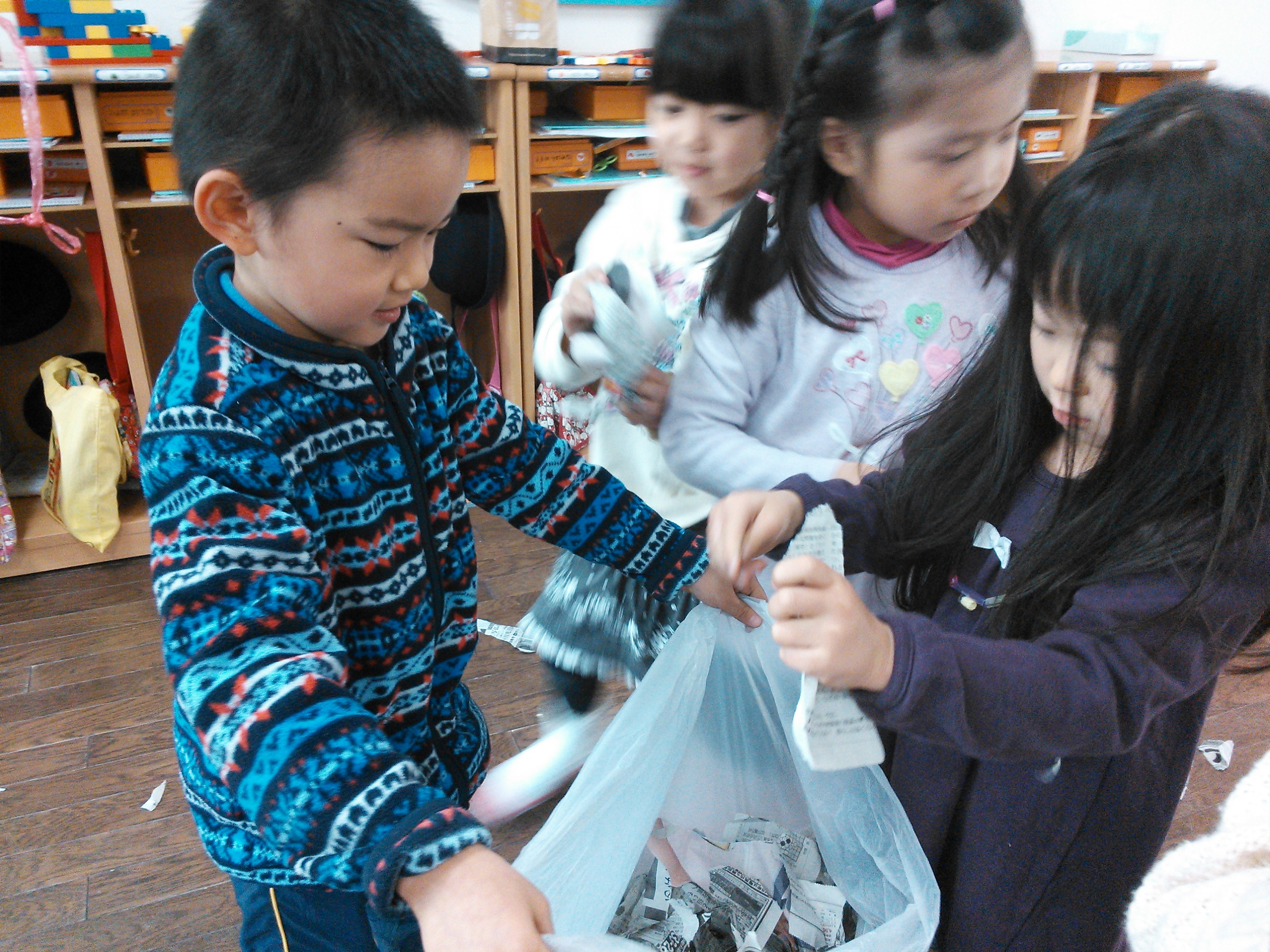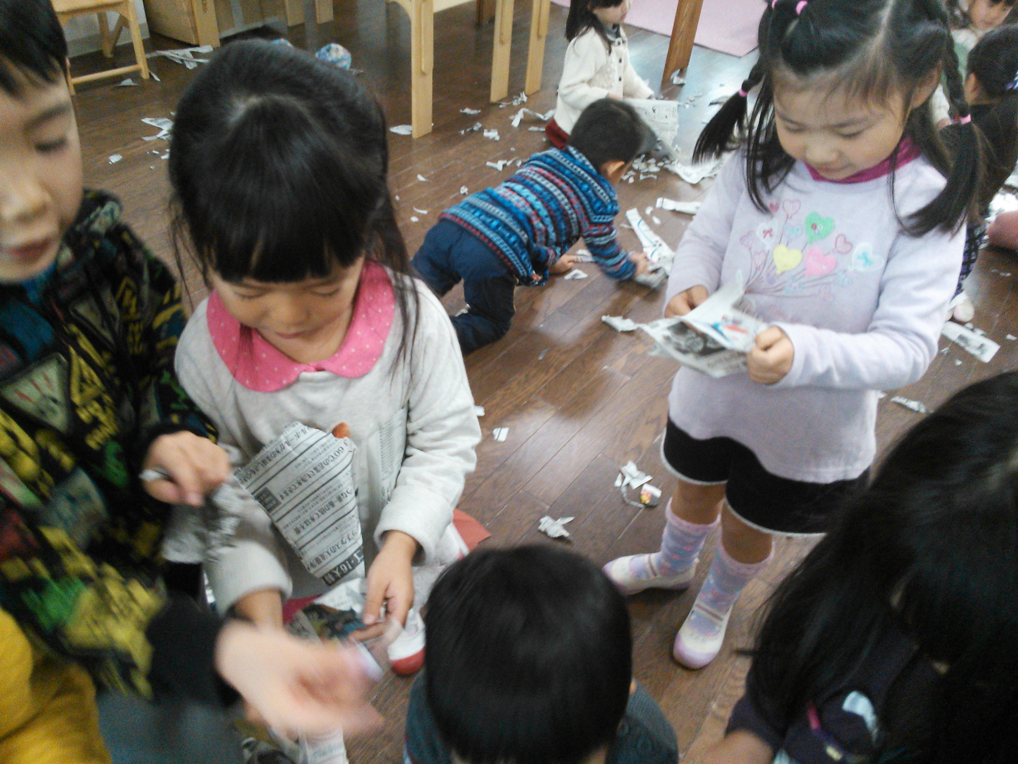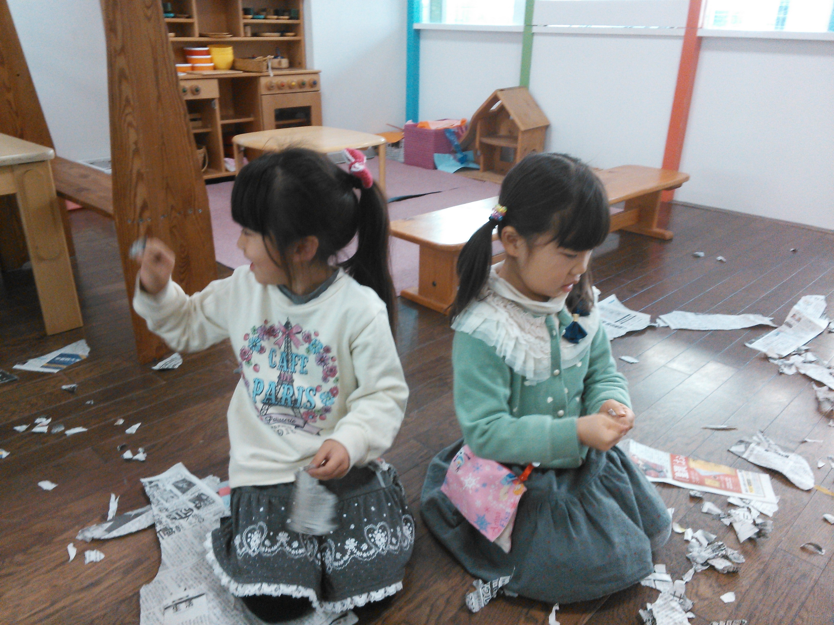 ちぎった新聞紙はプレイデーのコーナーで使われます。