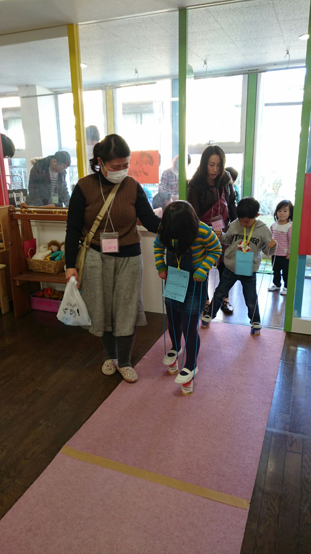 ちょっと時間のあったお友達は、園庭やロビーで、缶ぽっくり・お手玉や折り紙などで楽しんでいましたね。