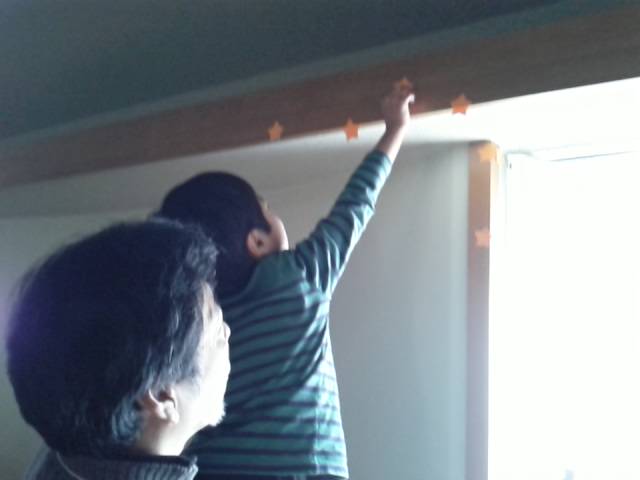 いつもは行かない『小礼拝堂』。たくさんの高いところにある星を見つけて、おうちの方にだっこしていただき、取っていただきました。