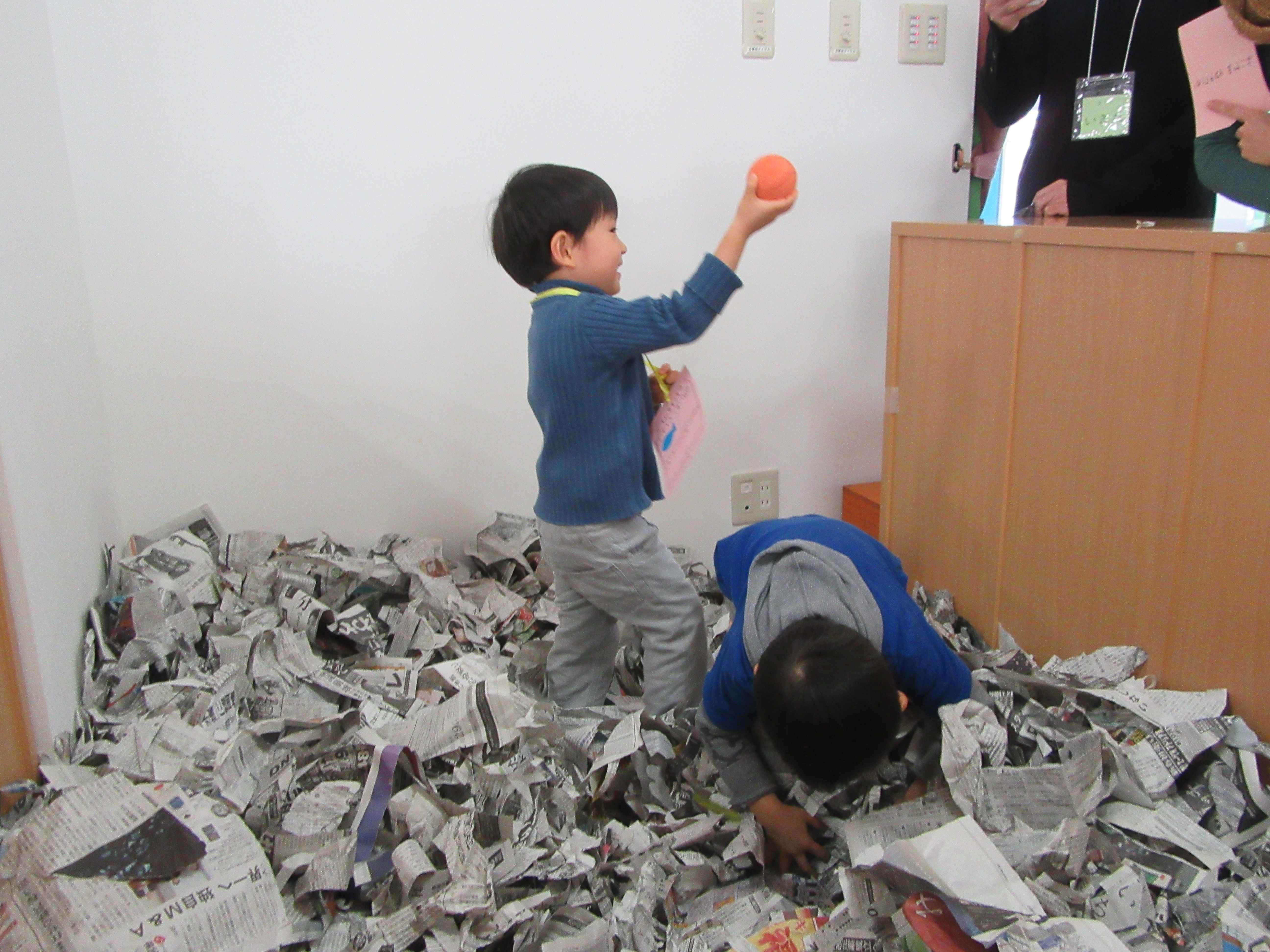 ②新聞のプールの中で、太陽みたいな色のボールを探し…。