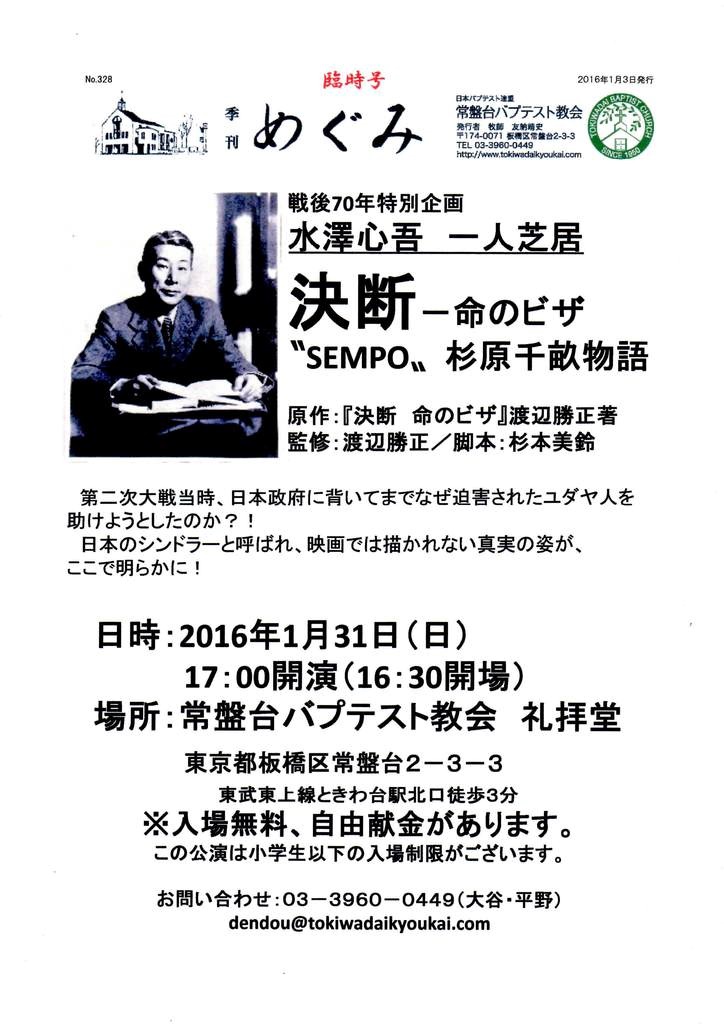 3. 一人芝居「杉原千畝物語」上演 本日夕方