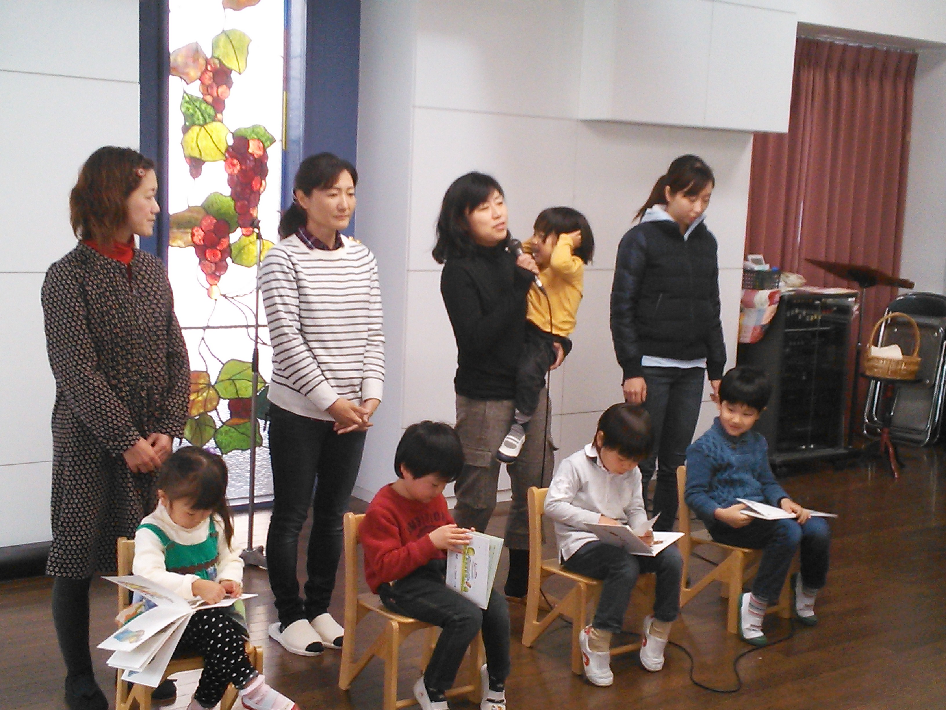 各クラスでお母さまと遊び、礼拝で、神さまに守られて大きくなったことを感謝しました。一人ひとりが素敵なお誕生カードを頂きました、嬉しいですね!