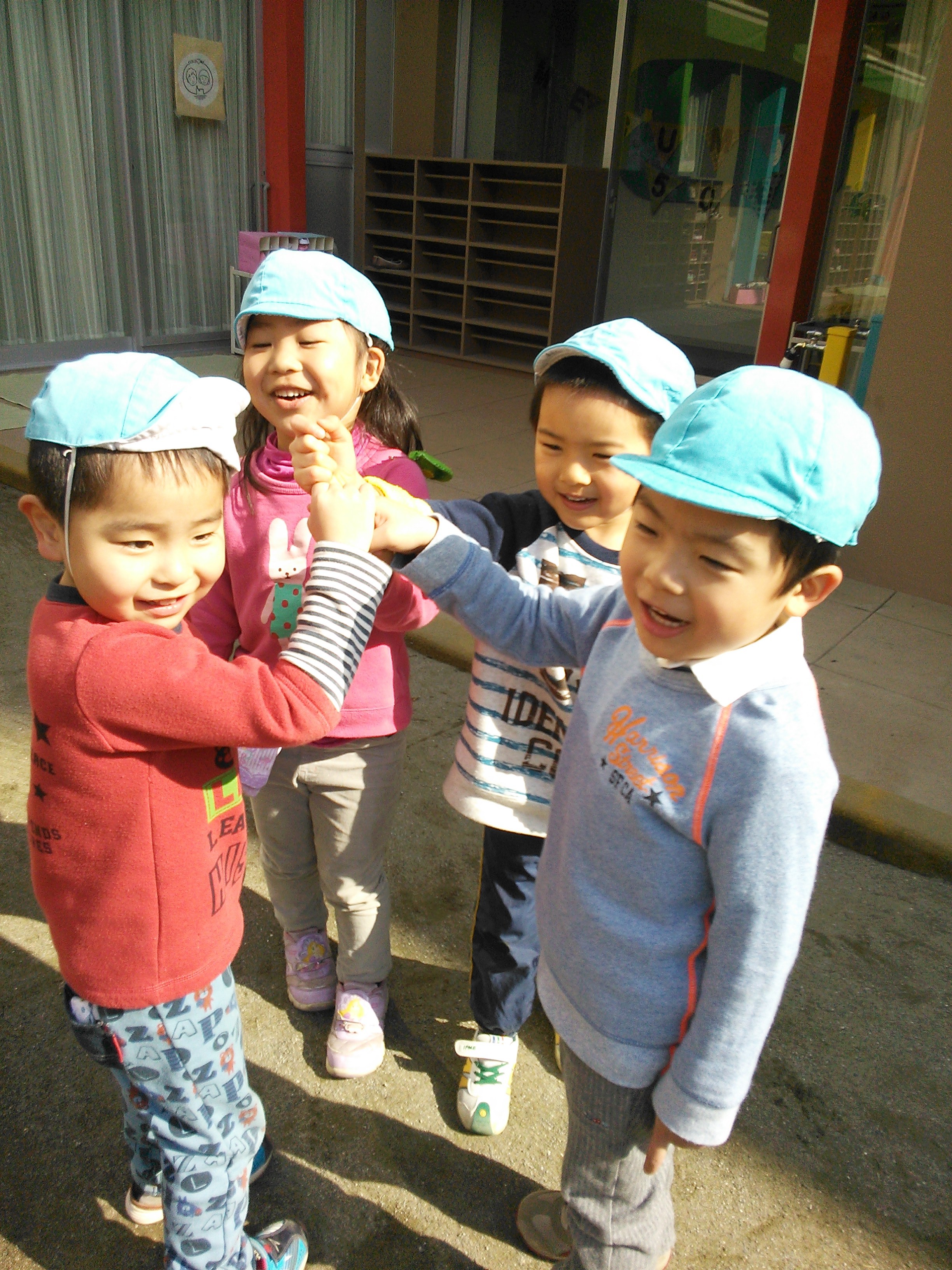 まだまだ寒いけれど、幼稚園のお庭に“春が近づいてきている”ことを子どもたちと見つけました。