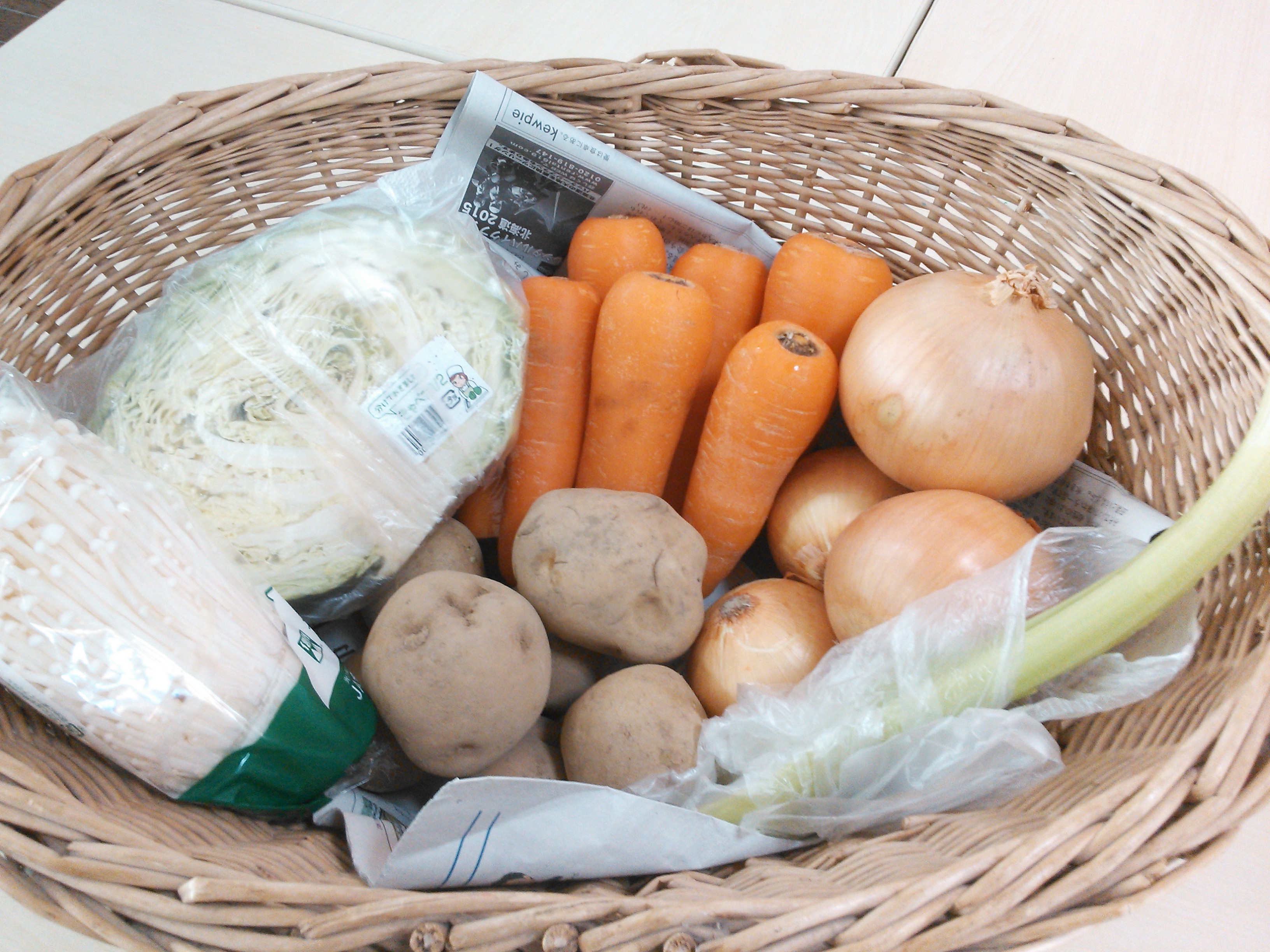 沢山の野菜をお家から、持ってきて頂きました。これは、野菜コンソメスープになります。