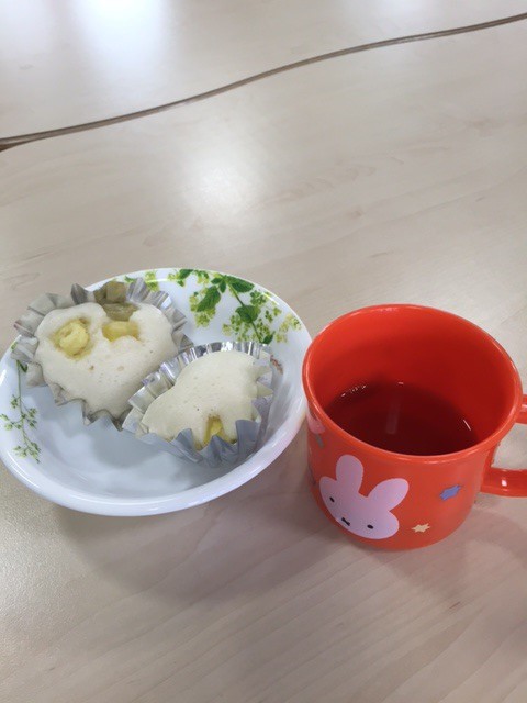 今日のおやつはサツマイモ入りの手作り蒸しパン。ふわふわでほかほかで、とても美味しかったですね。