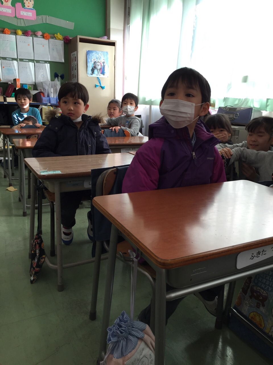 まだまだ子供たちには、他人事のようでしたが、あと2か月後には、ランドセルを背負って自分の机・椅子に座って…授業が始まっているんですね。