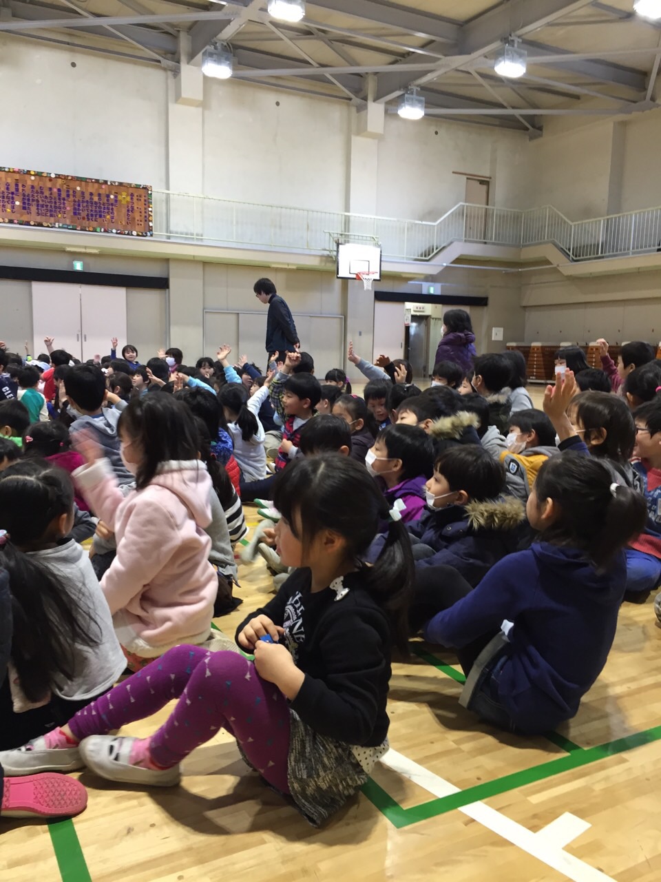 体育館では、学校クイズをしたり、お歌を聴かせてもらい…楽しかった交流会の時間は、あっという間に終わりました。