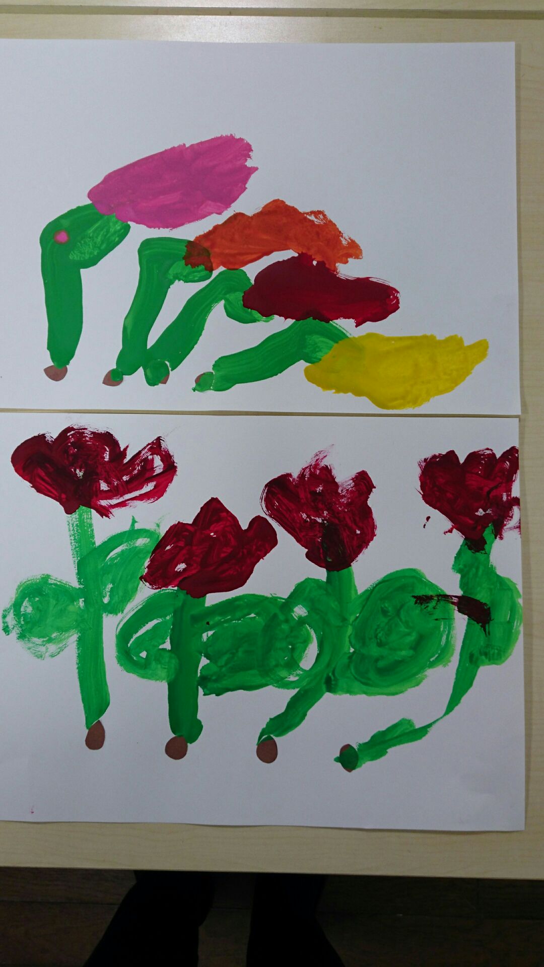 種から芽が出て伸びていく様子を筆で表してゆきました。きれいなお花が咲き、お友だちも大満足。