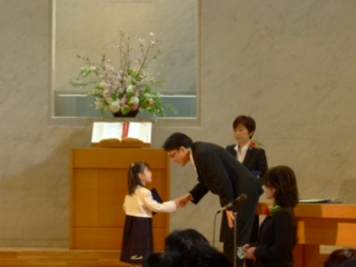 今日は、年長さんのおうちの方々の他に、年中さん・年少さんとおうちの方々、教会員の方々、卒園したご父兄、お友達、学校の先生…たくさんの方々に守られ、お祝いしていただき嬉しかったですね。