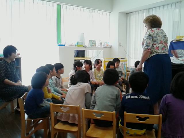 さくら組になると英語の時間があります。外国人の先生と楽しい歌やゲームを通して異文化に親しみます。今日は初めてだったので、少しドキドキしたお友だちもいましたが、楽しい時間を過ごしました。