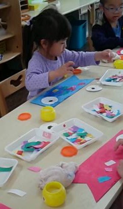 『たんぽぽさんの力作です!』 今日のひとこま 2016.04.19 もうすぐ子どもの日。たんぽぽさんは、先週、色を塗った和紙に、目と鱗をつけました。 一人ひとりの個性が光る素敵なこいのぼりができました!