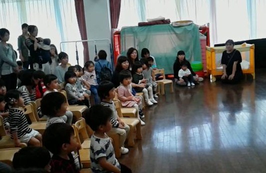 今日は今年度初めての未就園児保育もも組の日でした。たくさんのお友達が遊びに来てくれました。