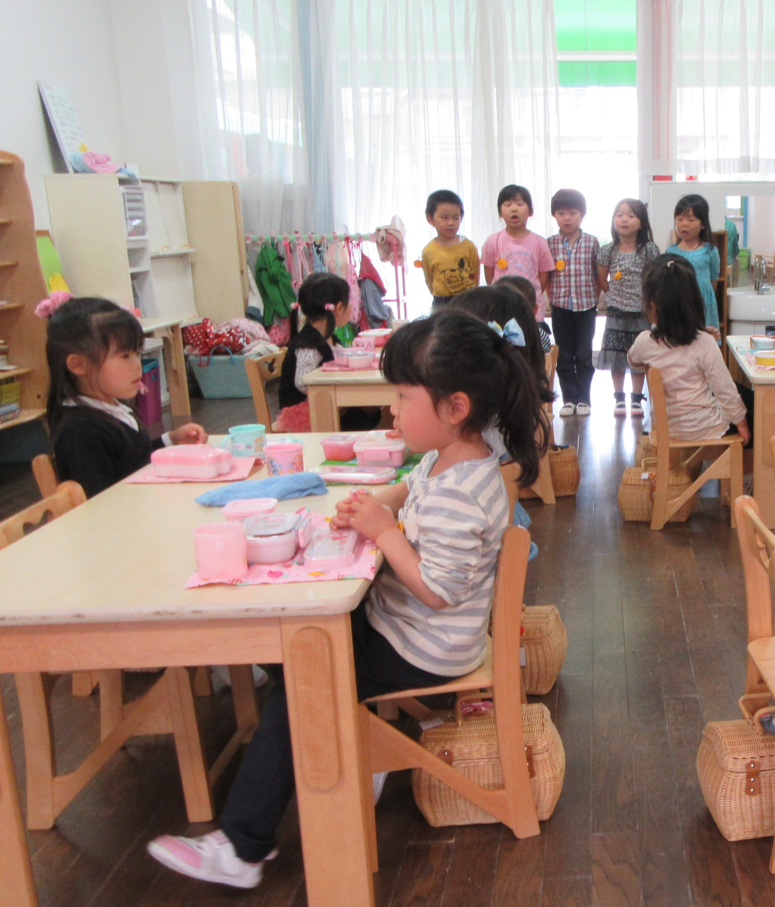 今日は、各クラス、みどり、みずいろ、きいろ、ピンクの4グループに分かれて、グループ交流を行いました。3学年のお友だちが、集まって、一緒にお弁当を頂きました。さくらぐみさんが、中心になって準備をしたり、お祈りをする様子は、とても微笑ましく、楽しいひと時を過ごしました。