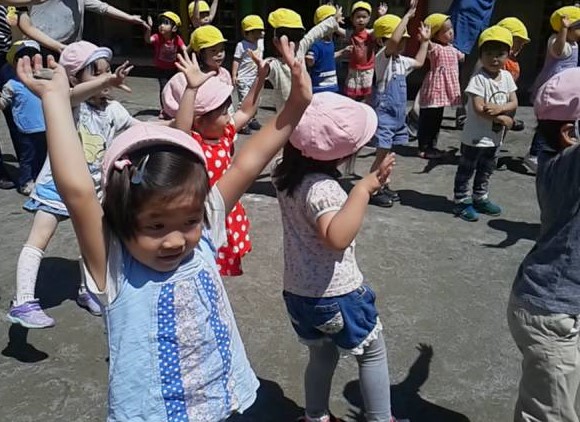 『体操』 今日のひとこま 2016.05.18 みんなで一緒に体操をしました。いろいろな動物に 変身して身体をいっぱい動かしました。可愛いうさぎさん、ちょっと恐いゴリラくん…変身する度に、お顔の表情まで、自然に変化しているお友だちもいました。