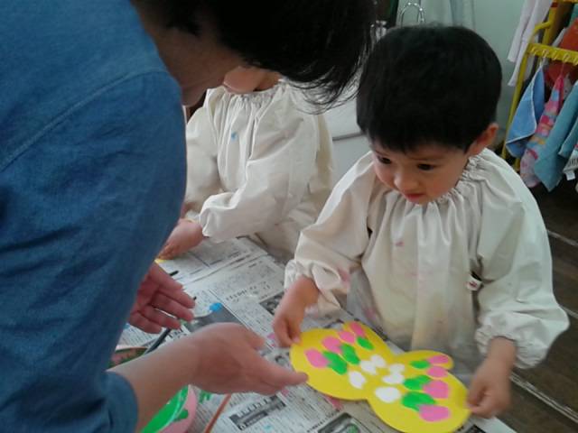 「わあ!綺麗!」嬉しそうにヒラヒラ羽根を動かすたんぽぽ組の子どもたち。