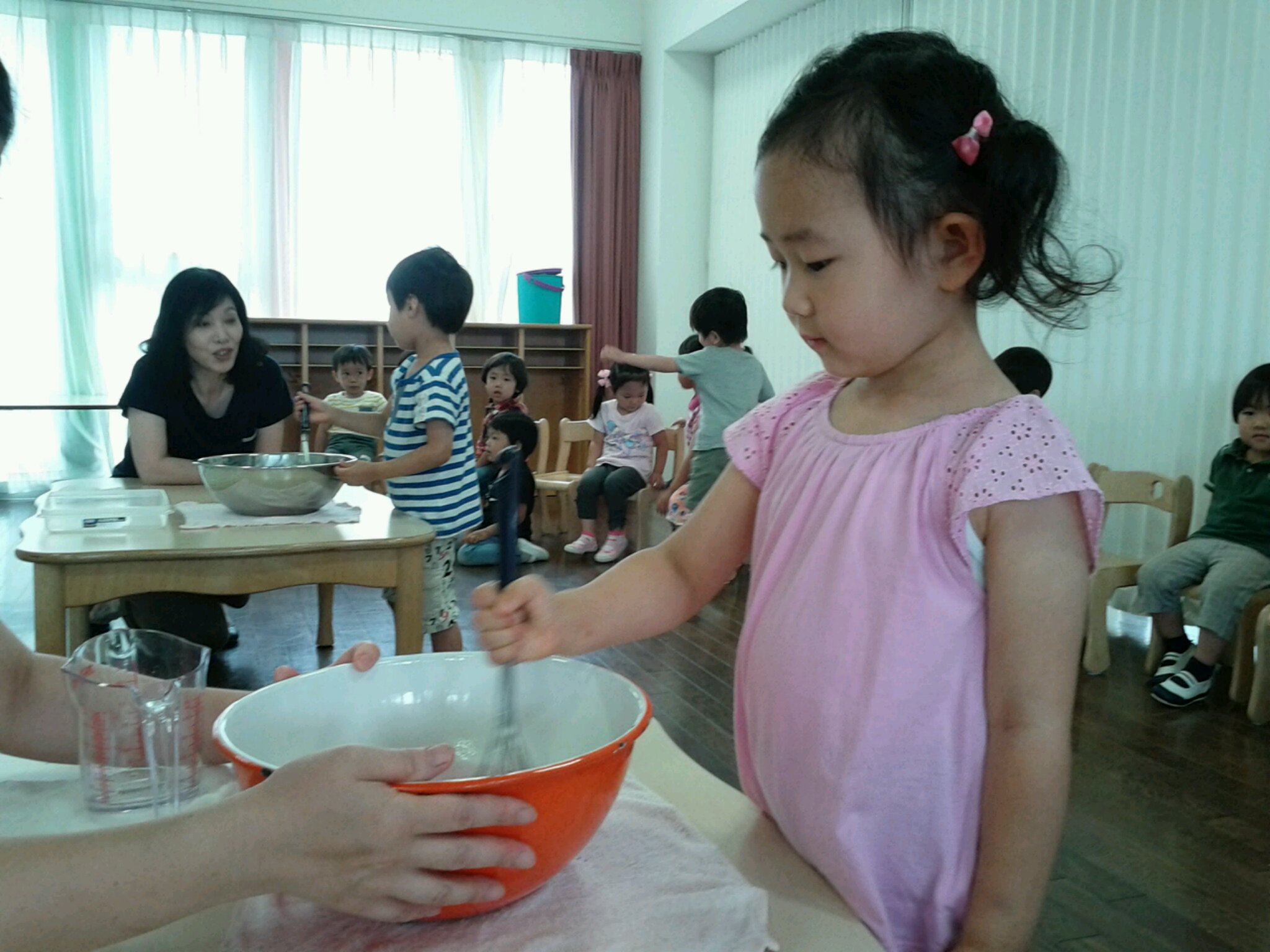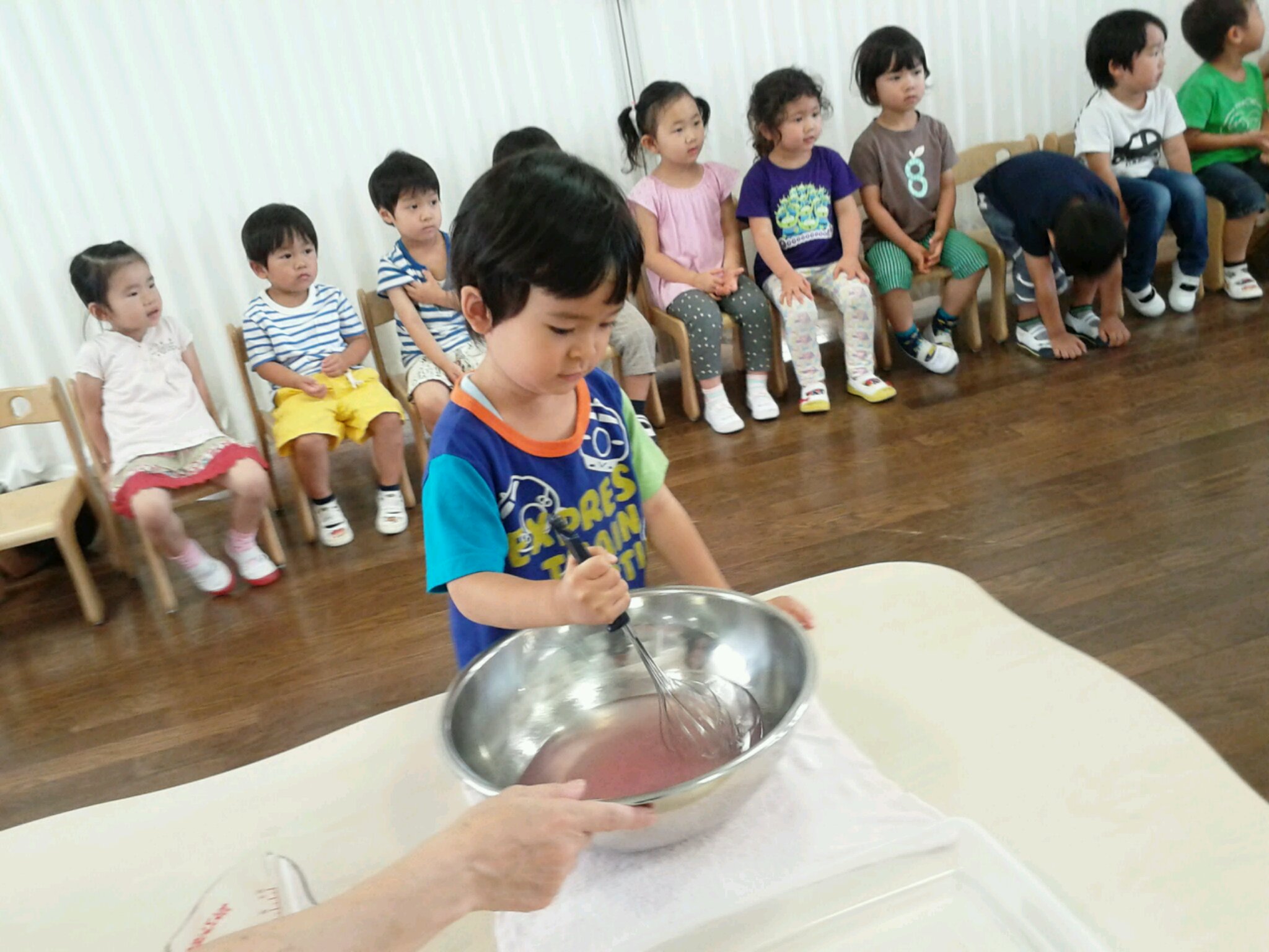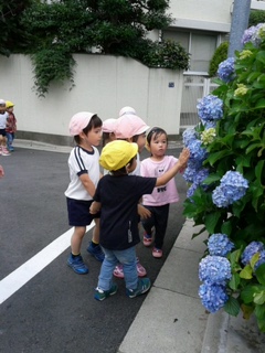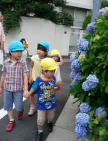 ゆり組さんにとっては、初めてのお散歩でしたが、さくらさん・たんぽぽさんが…優しくリードしてくれて、あじさいのお花を見つけて楽しむ事が出来ました。