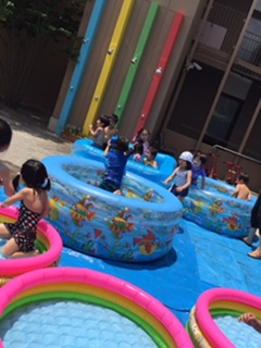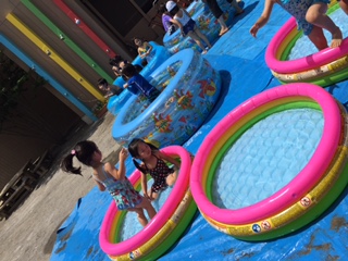 『プールあそび』 今日のひとこま 2016.07.04 夏を思わせるような暑さが続く毎日。 今日は、プールあそびを楽しみました。 各学年、時間をずらしたので…8個のプールを全部使って、水の気持ち良さを充分に感じました。 『あしたもはれるかな…?』