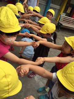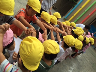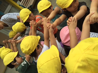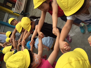 『トンネルのお返し…』いつもトンネルをしてくれる年長さんに、ゆり組さんがトンネルを作って、通ってもらいました。