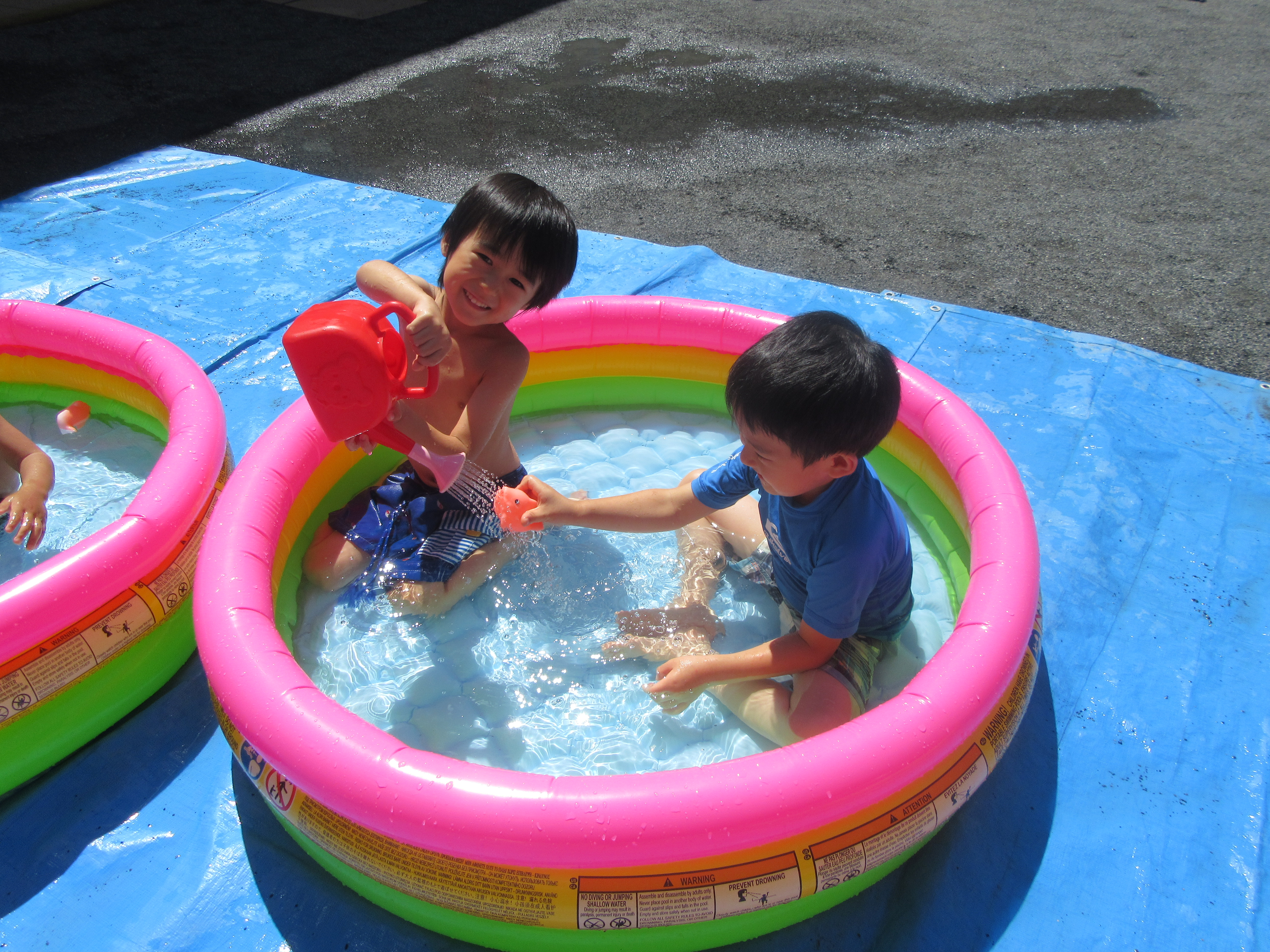 プール遊びを楽しみました。そして…凍らせた冷たいみかんを、美味しく頂きました。