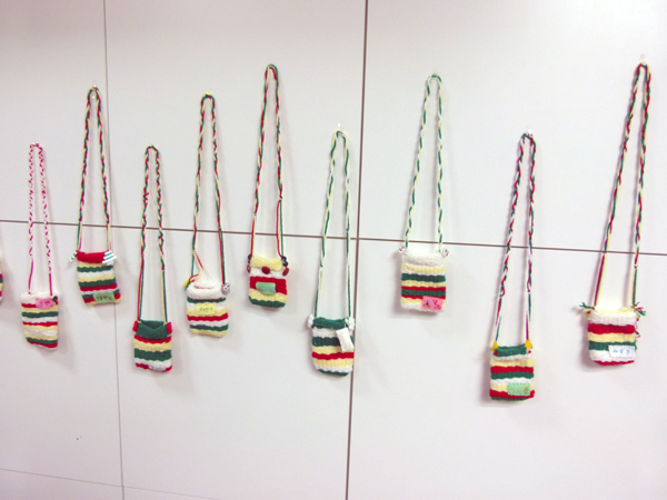 年長 さくらぐみ : イエス様のお誕生をお祝いするクリスマス。教会をイメージして暖かな蝋燭の光が灯るキャンドルホルダーを作りました。献金袋は一目一目大切に毛糸を編んで、作りました。