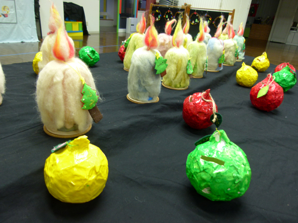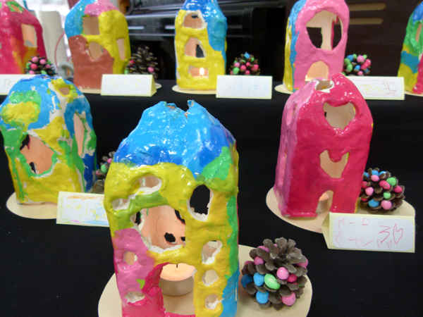 年中 たんぽぽぐみ : 光をイメージして、献金箱とキャンドルホルダーを、様々な素材を使って作りました。好きな色を選んでクリスマスを待ちながら、少しずつ作っていきました。