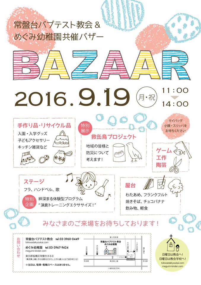 常盤台教会&めぐみ幼稚園共催のバザーが今年も行われます。