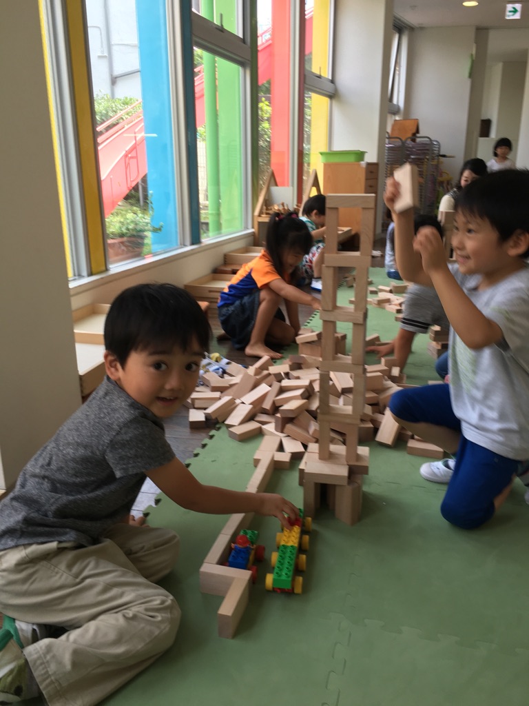 『積み木遊び』 今日のひとこま 2016.10.06 高く高く積み上げる時の真剣な顔。 崩れてしまう時の残念そうな顔。 ゆりさんもたんぽぽさんも 夢中になって遊びました。 お腹が空いていることに気がついて お片づけとなりました。