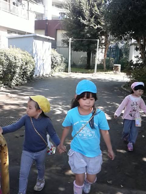 『どんぐりころころ』の歌を歌ったり…おさんぽバックを持ったり、準備もバッチリで歩いて行くと…。