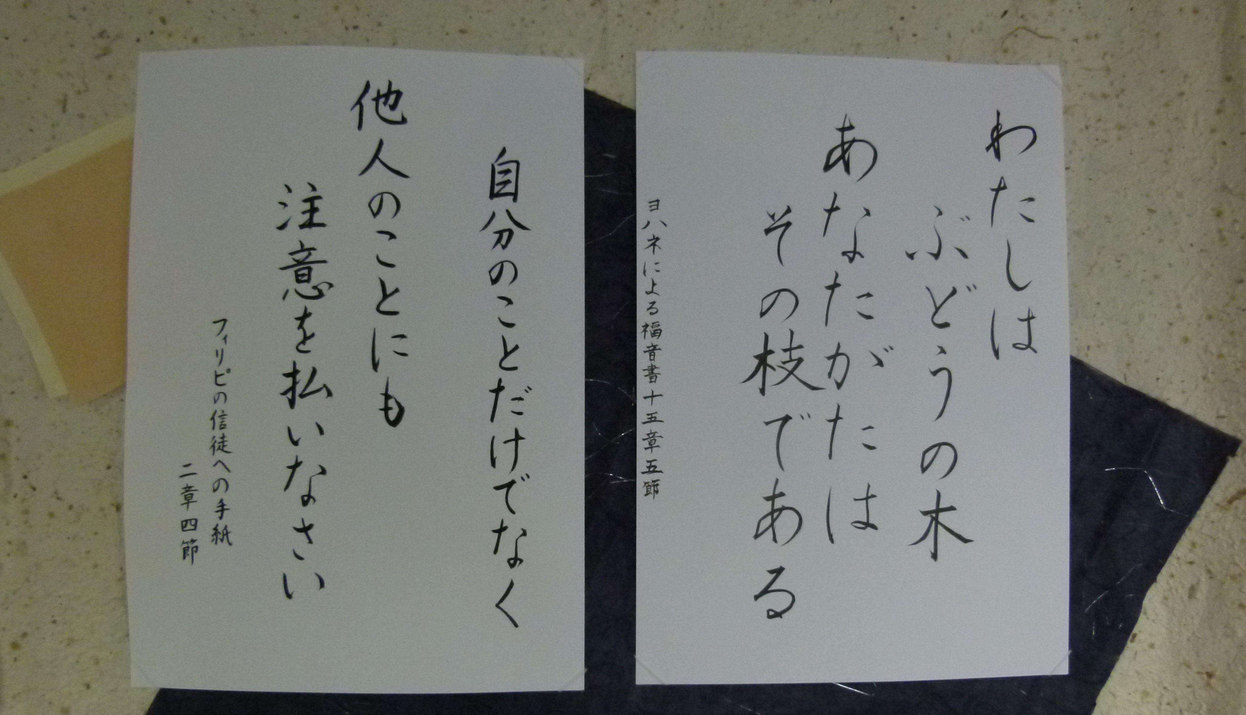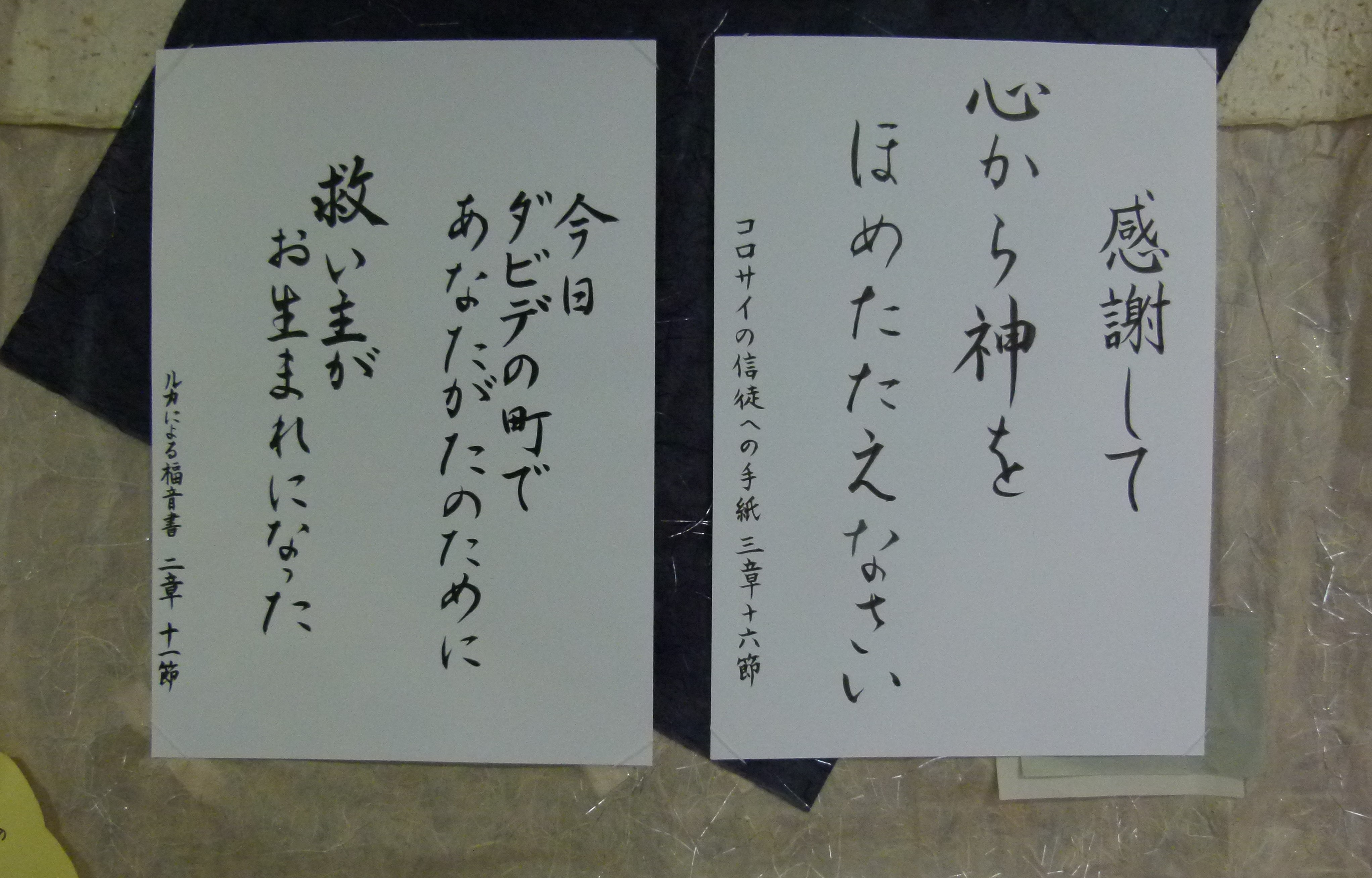 書道サークルのお母様方が毎月の聖句を書いて下さっています。〈幼稚園玄関〉