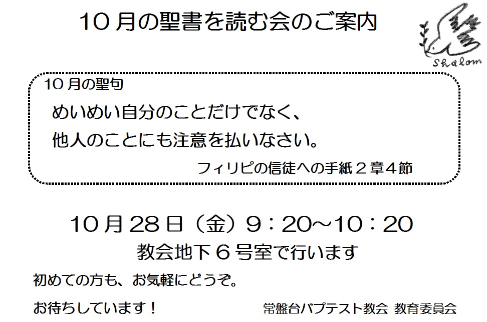 3. 聖書を読む会 28日(金) 9:20~10:20