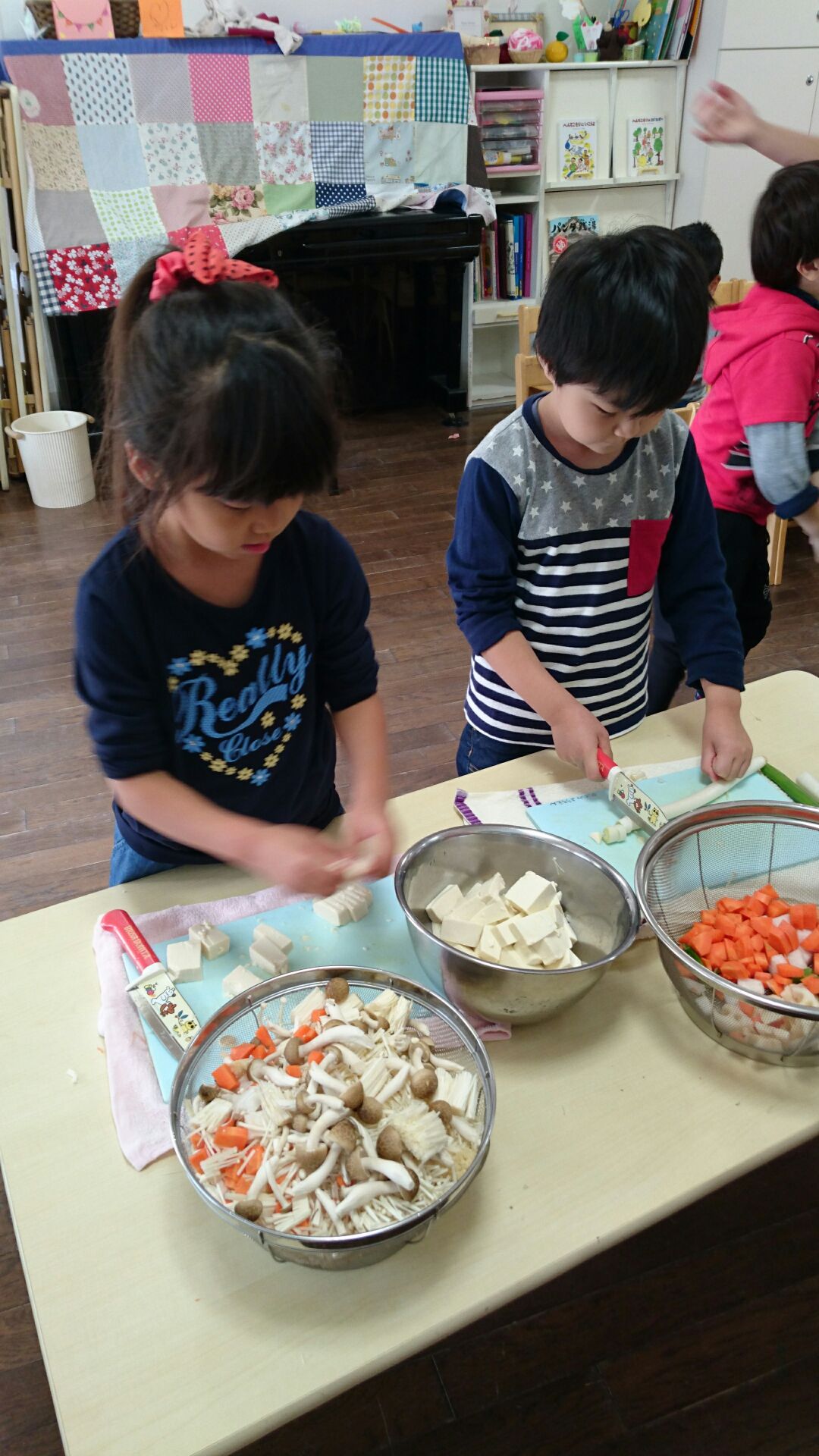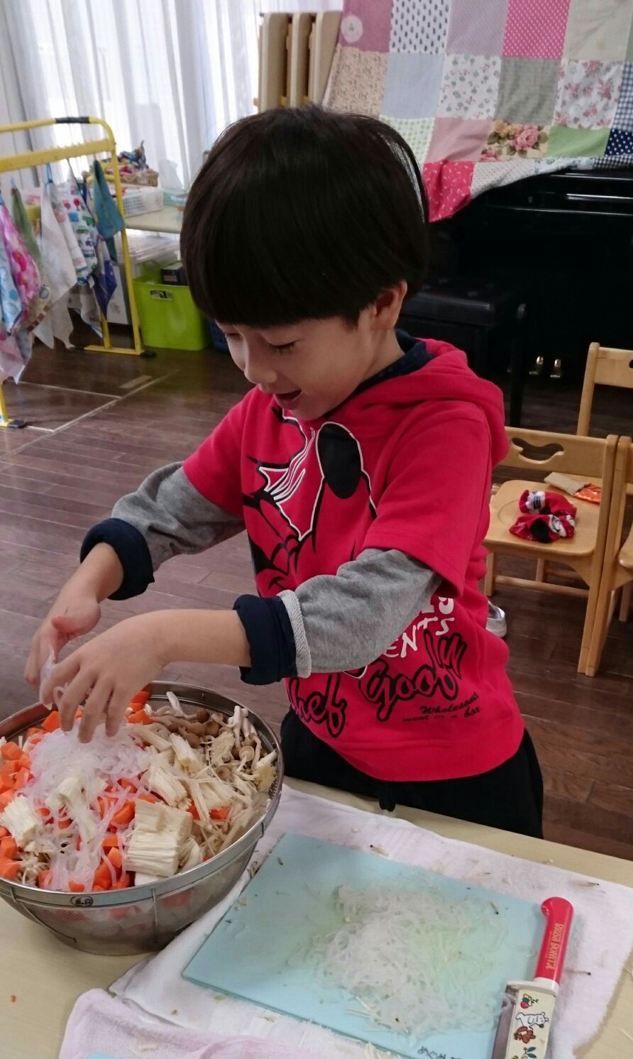さくら組はゆり組の時から調理をしているので、包丁の使い方も上手です。