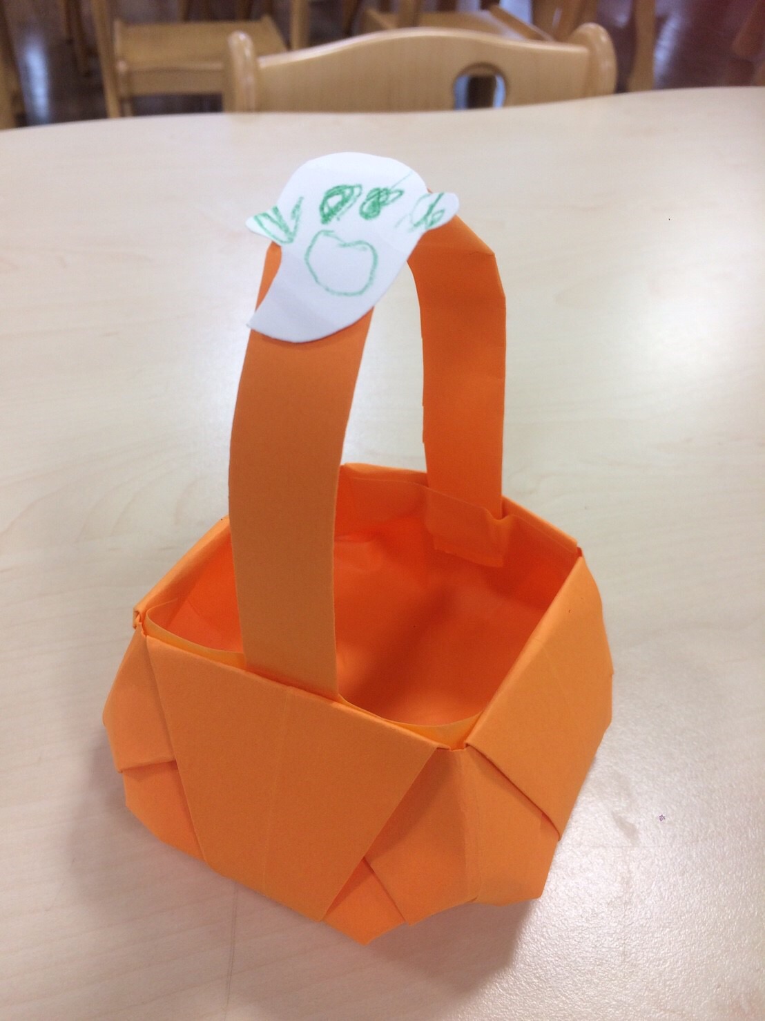 年長のさくら組さんがハロウィンの可愛いプレゼントを持って、もも組に遊びに来てくれました。どんぐりの手遊びを教えてくれたさくら組さん。とても楽しいひと時でした。