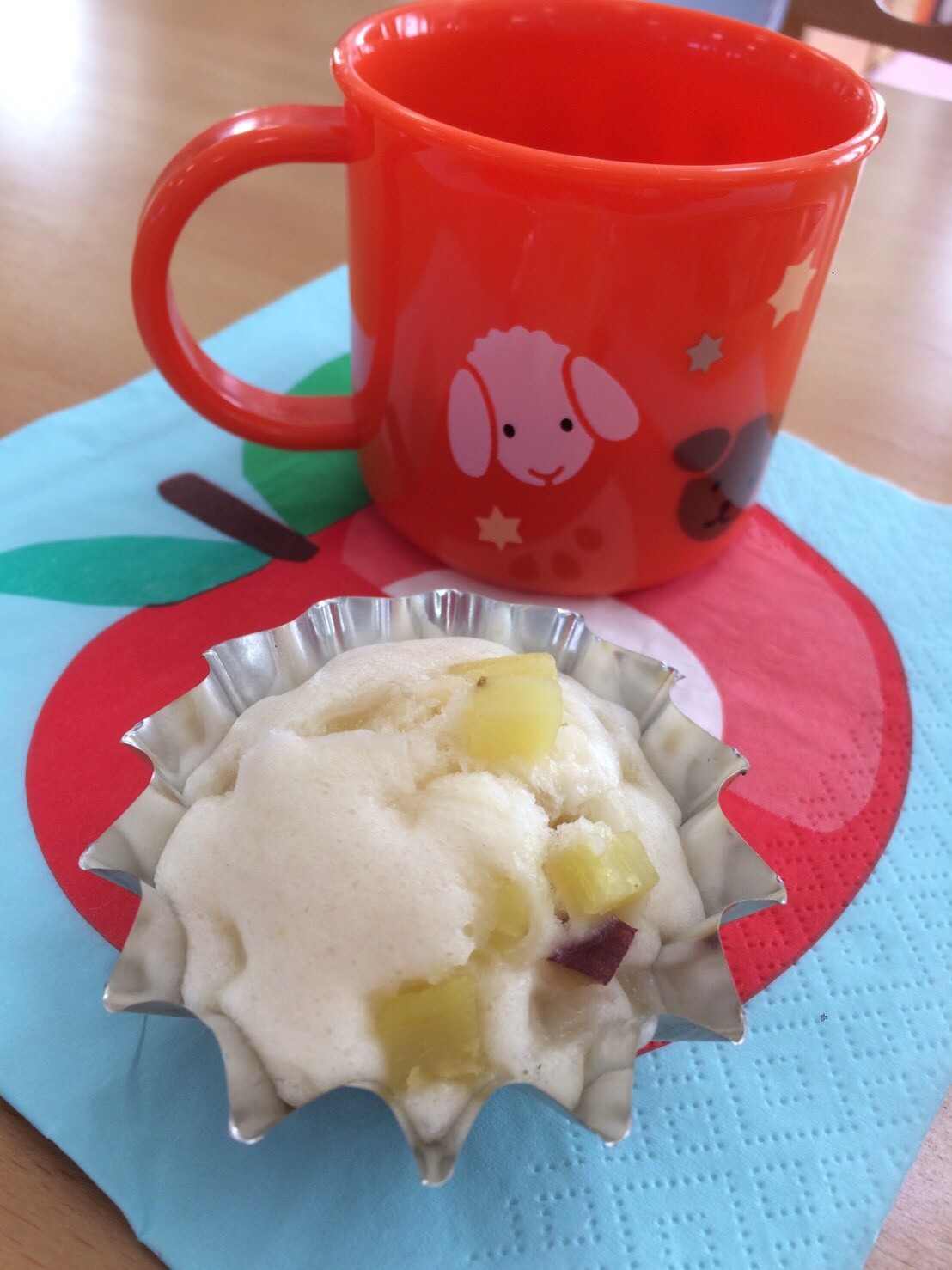 たくさん遊んだ後は、おいもとりんごの手作り蒸しパンをいただきました。ほんのり甘くてふわふわで美味しかったです。